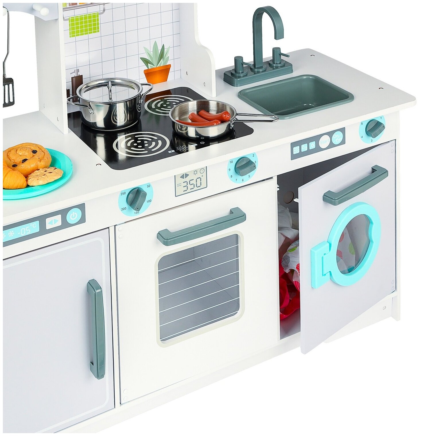 Купить Детская деревянная игровая кухня "Блуми Стайл" с 4 предметами посуды