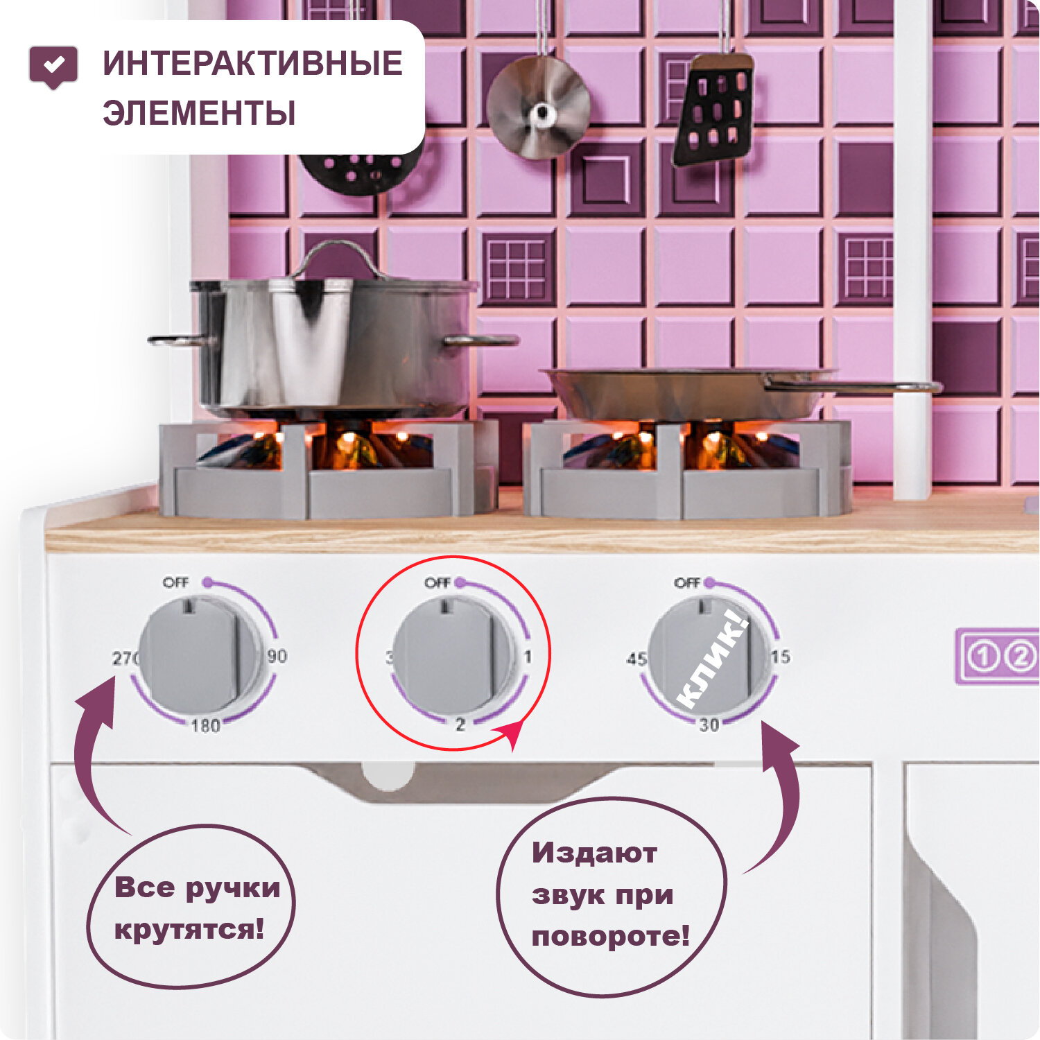 Детская деревянная игровая кухня PAREMO "Феста Виола", свет, звук, 6 предметов в наборе PK222-392 интересное: