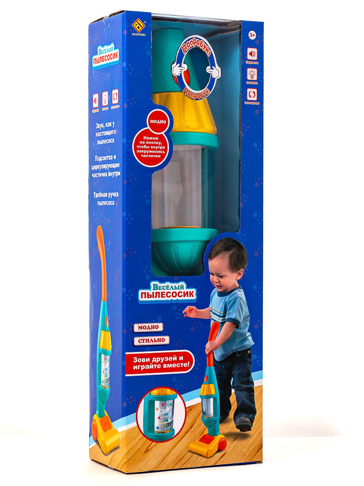 Купить Детский пылесос-каталка со светом и звуком, как настоящий, батарейки в комплекте, подарочная коробка