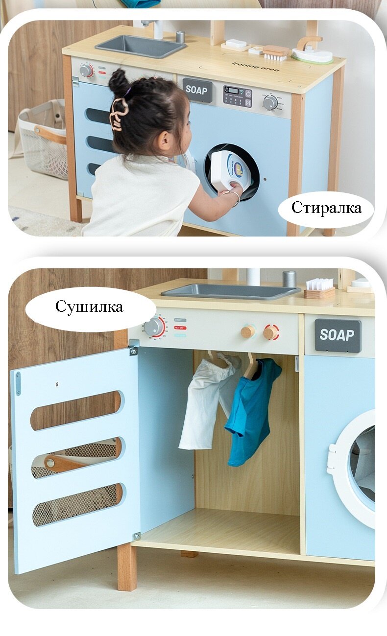 Детская кухня деревянная со стиральной машиной и сушилкой интересное: