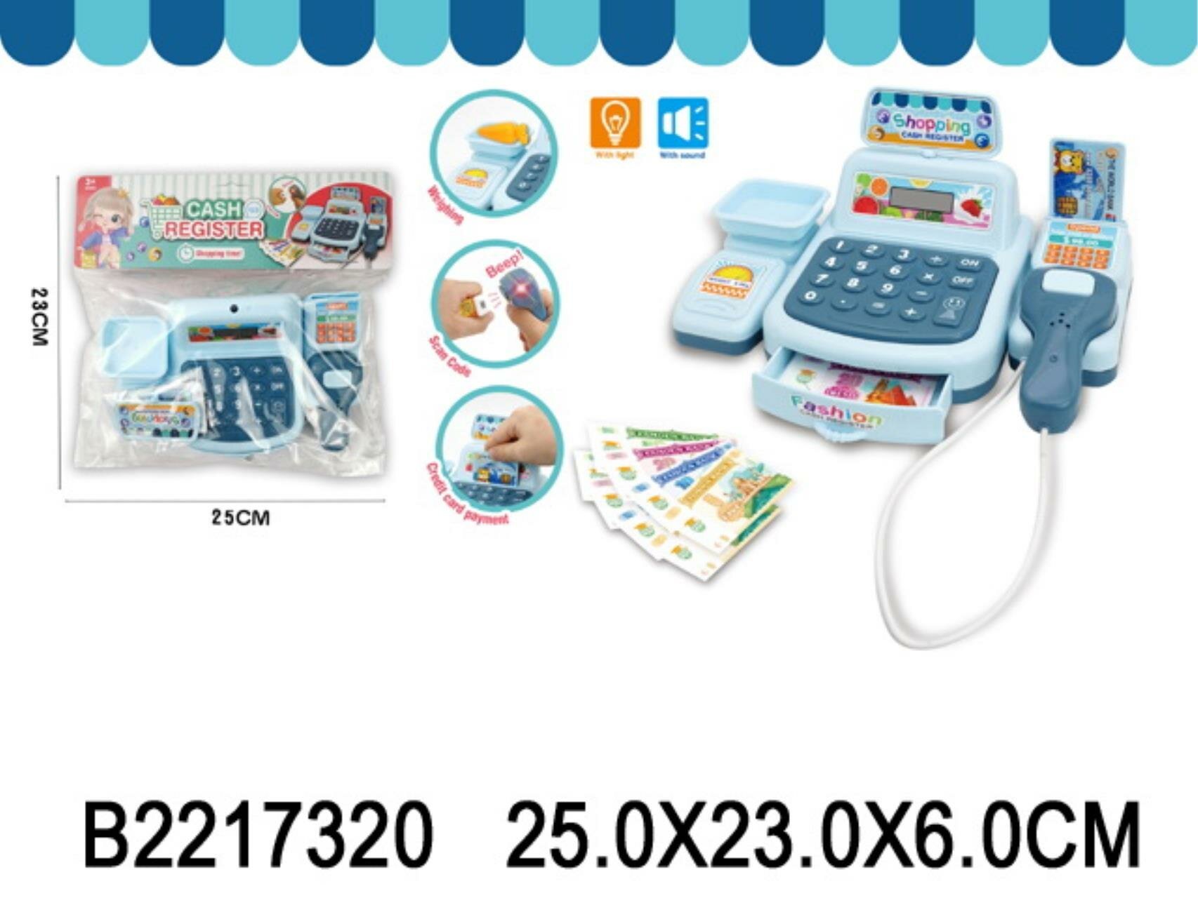 Купить Набор "Супермакет", цвет голубой, касса, сканер, весы, свет. и звук. эффекты, батарейки в комплект н