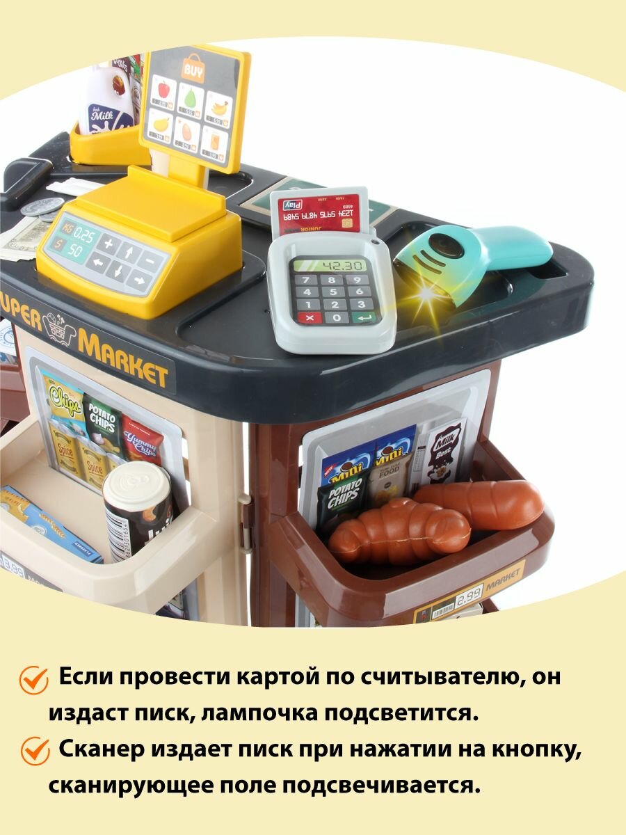 Детский игровой набор Супермаркет со сканером и картой, Veld Co / Игрушечный магазин со светом и звуком для детей интересное: