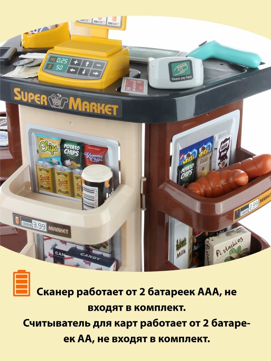Купить Детский игровой набор Супермаркет со сканером и картой, Veld Co / Игрушечный магазин со светом и звуком для детей