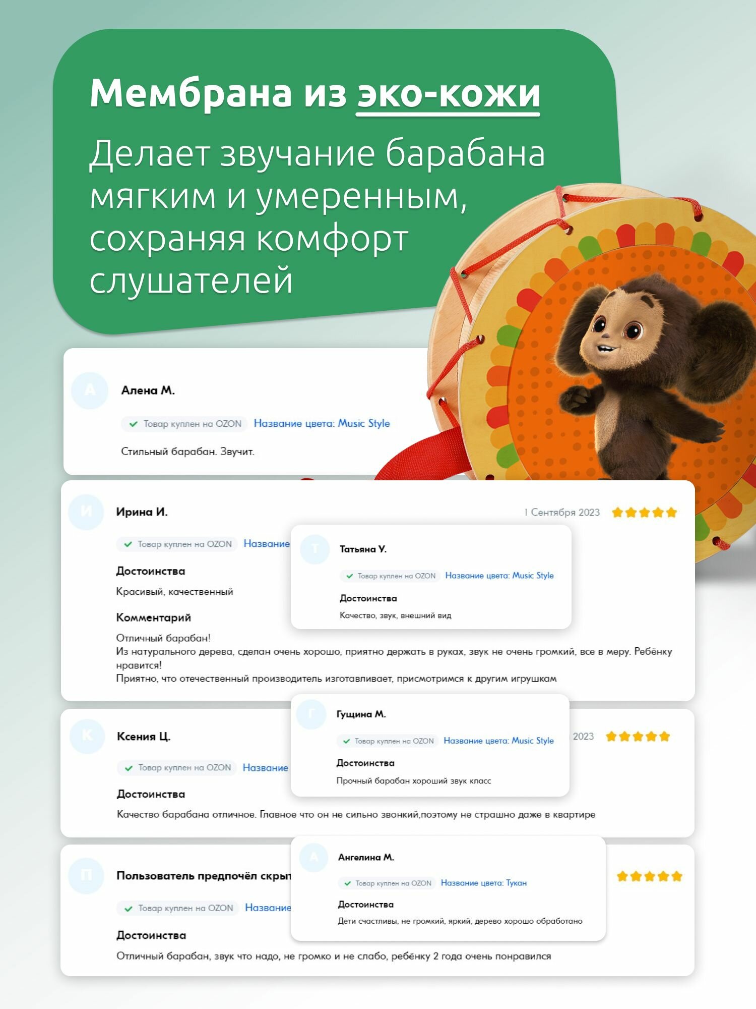 Барабан детский игрушечный Чебурашка MEGA TOYS интересное: