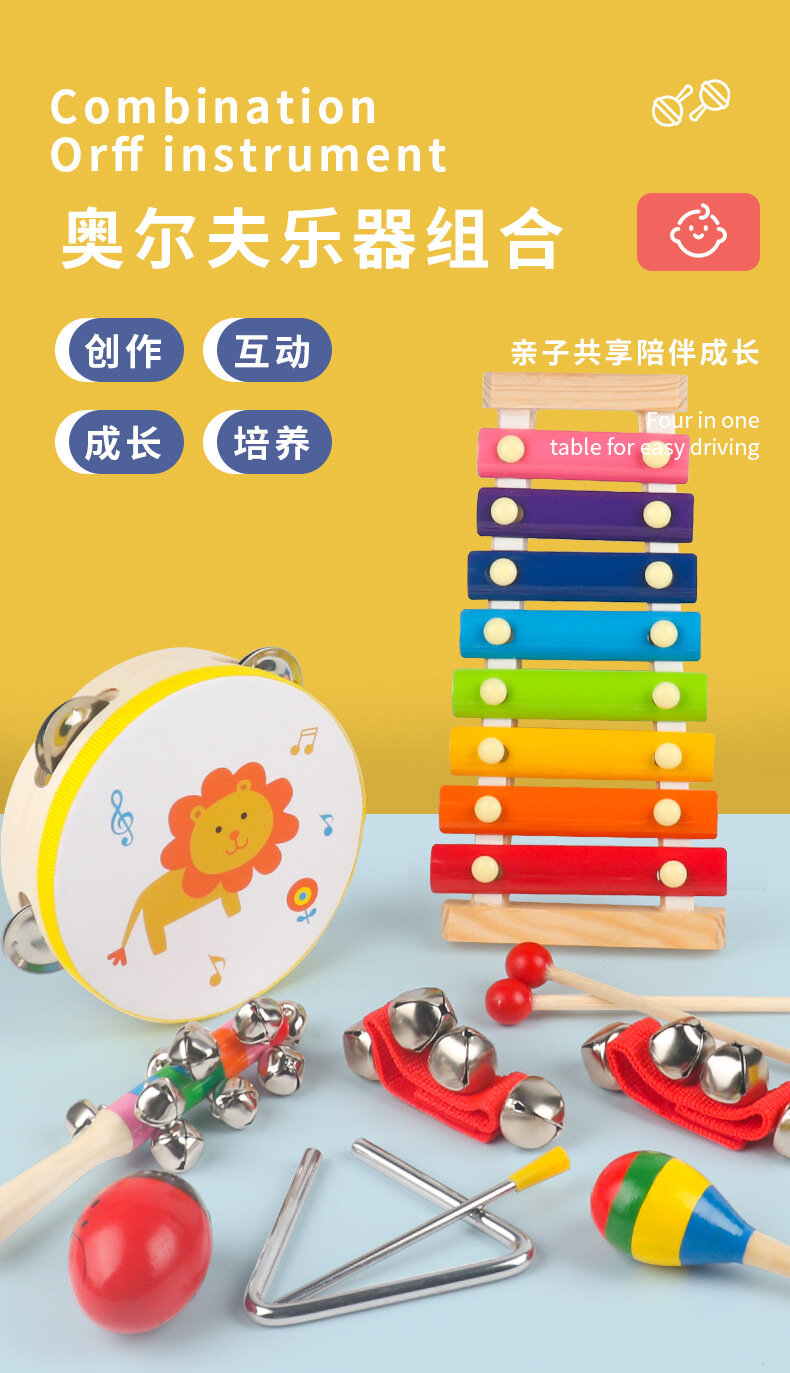 Купить Набор музыкальных инструментов Yun dile "Orff", для дошкольников, дерево, 10 коробок