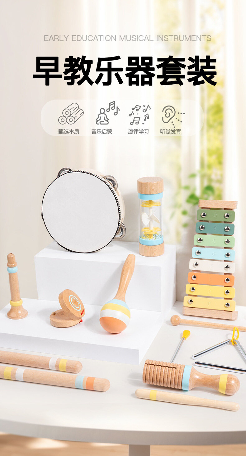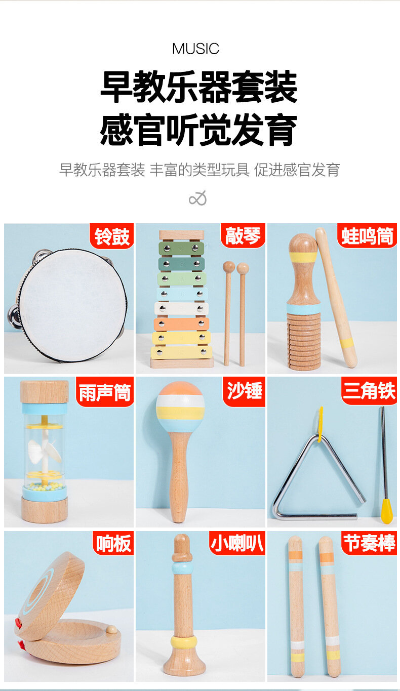 Купить Набор музыкальных инструментов Orff D22, дерево, для раннего развития, 9 предметов