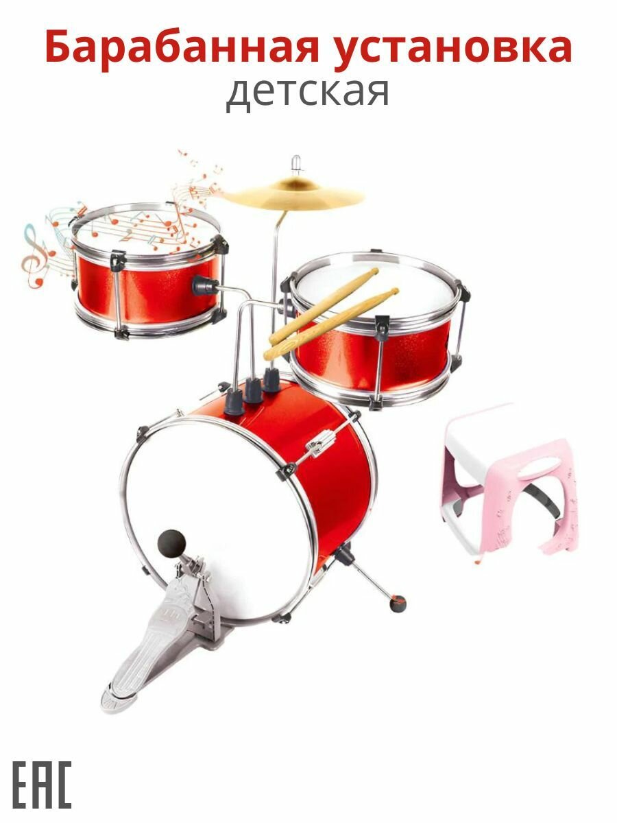 Детская барабанная установка, красная / Музыкальные инструменты для детей интересное: