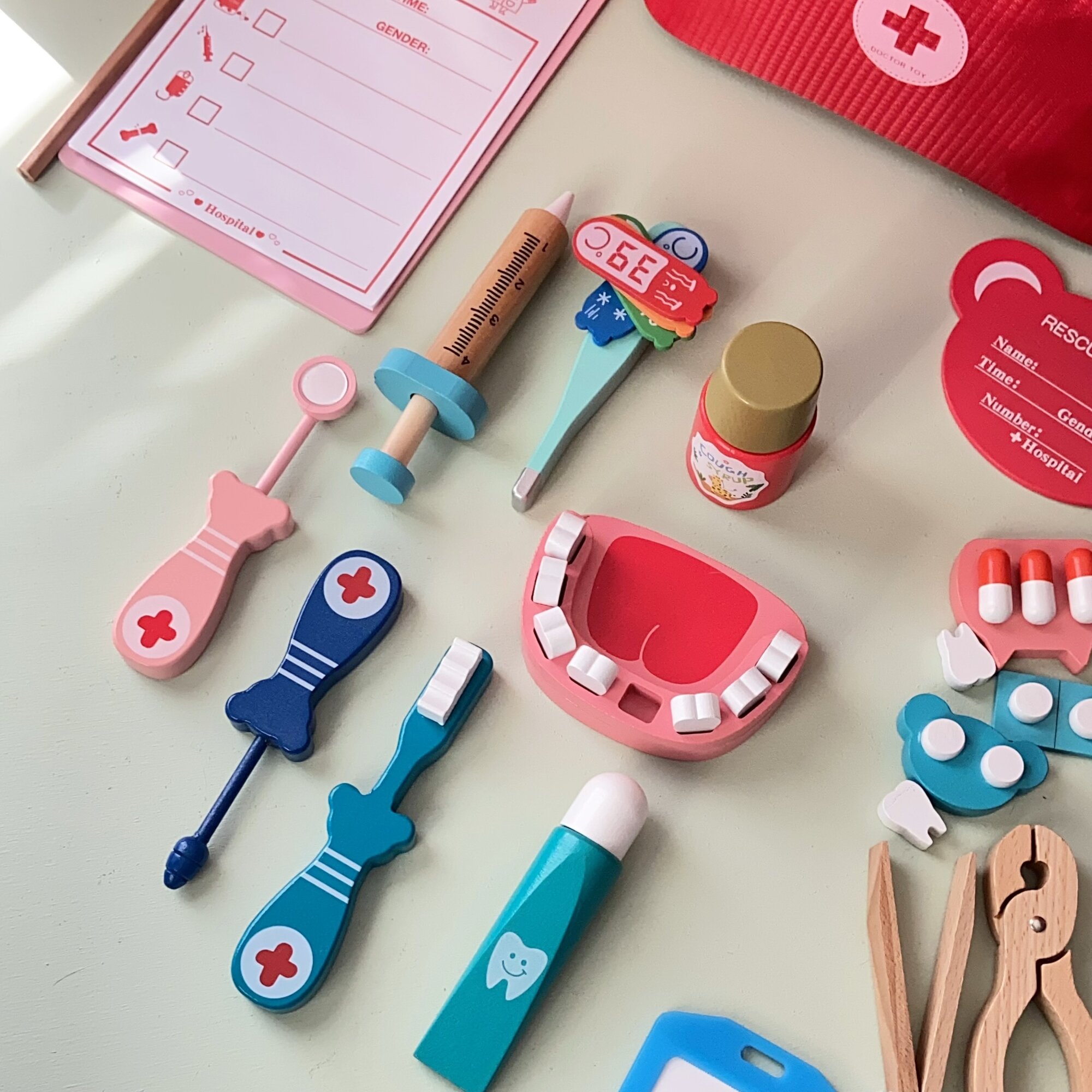 Игровой набор "Доктор ", дерево, текстиль, чемоданчик, красный интересное: