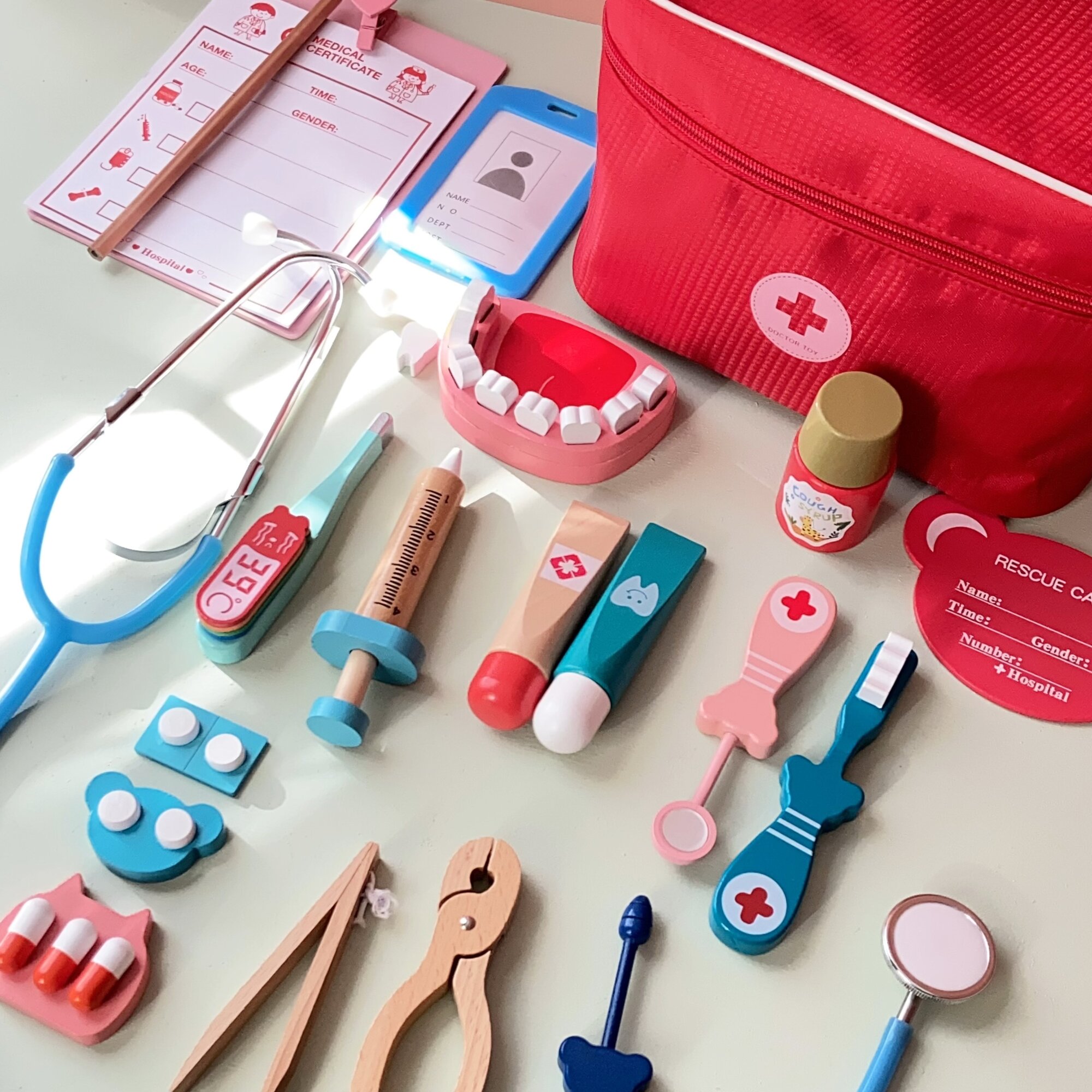 Купить Игровой набор "Доктор ", дерево, текстиль, чемоданчик, красный
