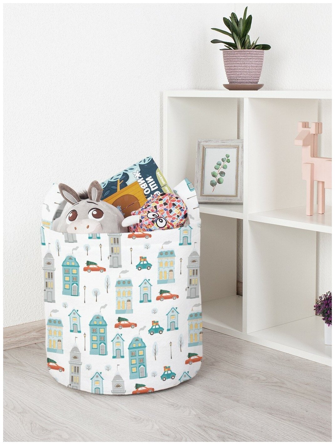 Корзина для хранения игрушек органайзер с ручками "Зимний город" 34л, JoyArty, серия Новый год интересное: