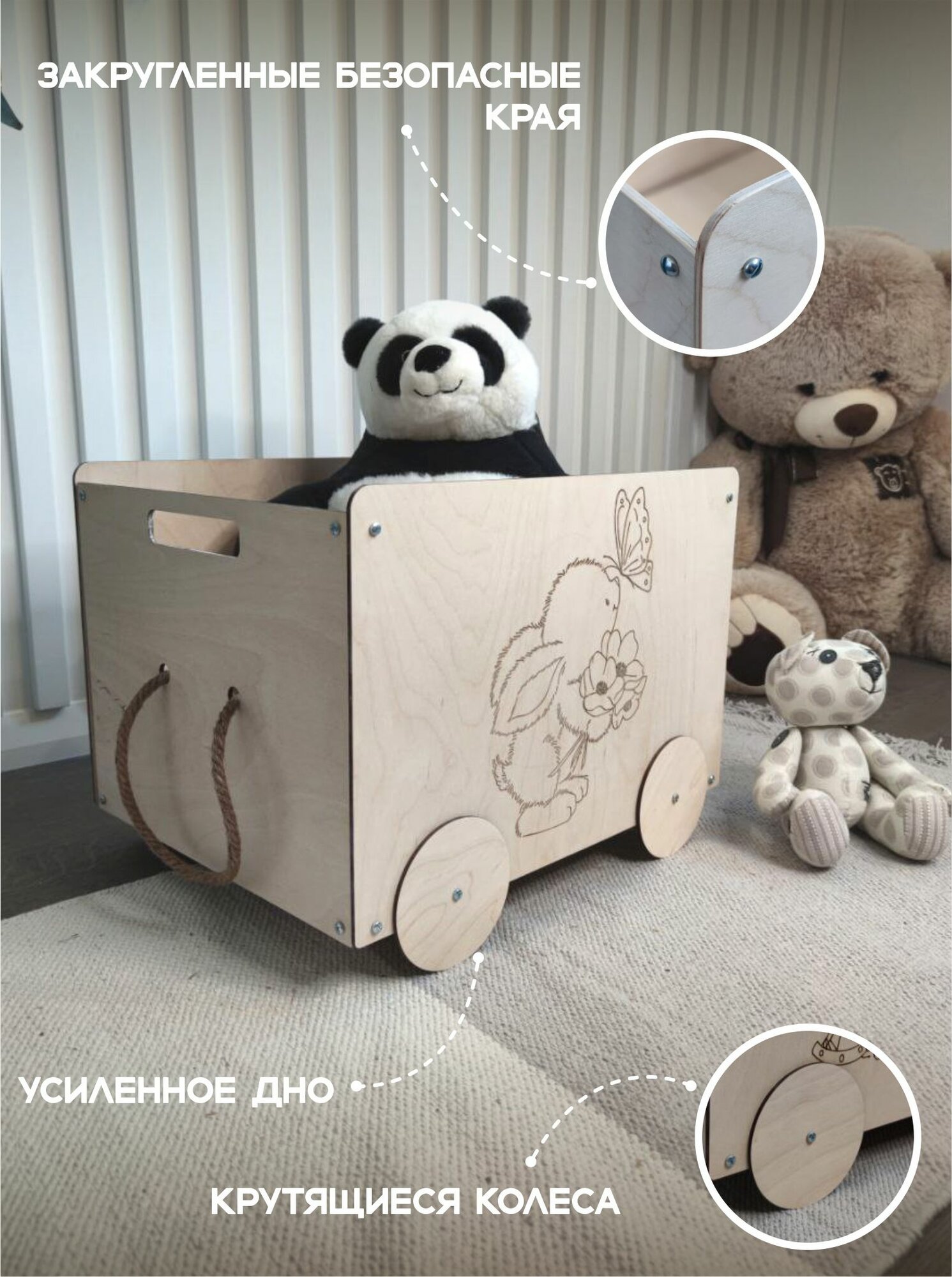 Ящик (корзина) деревянный для хранения игрушек на колесах "Зайчик" интересное: