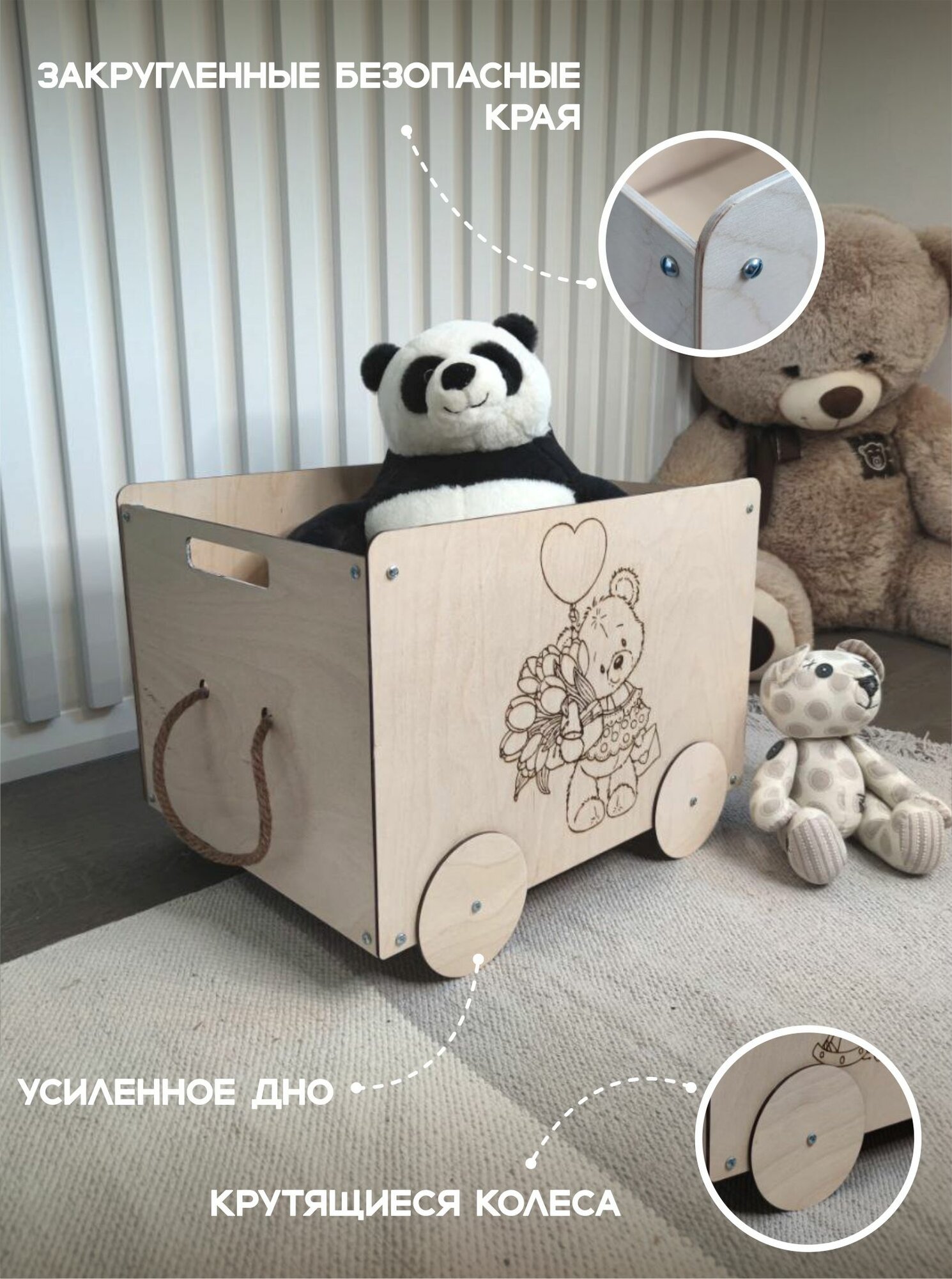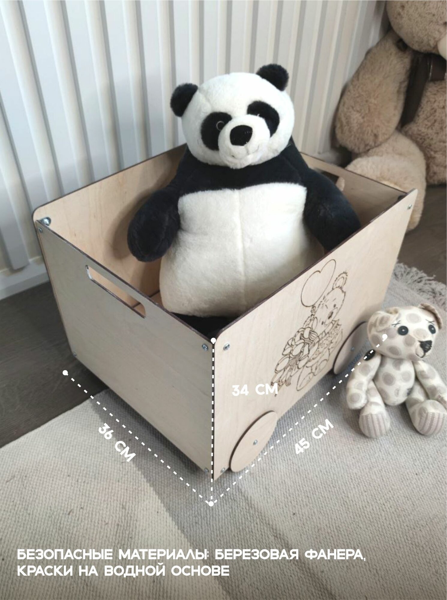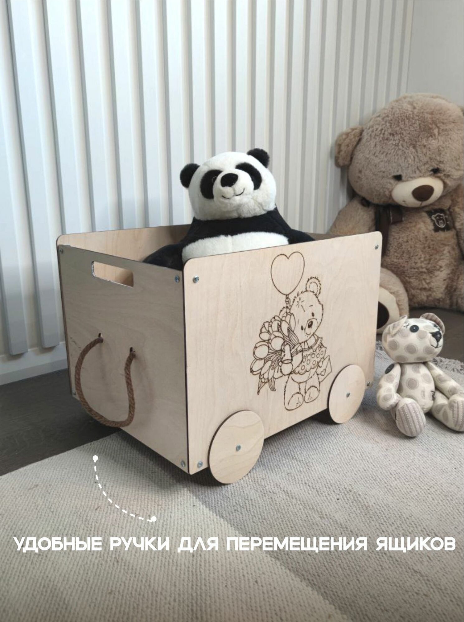 Ящик (корзина) деревянный для хранения игрушек на колесах "Мишка" интересное: