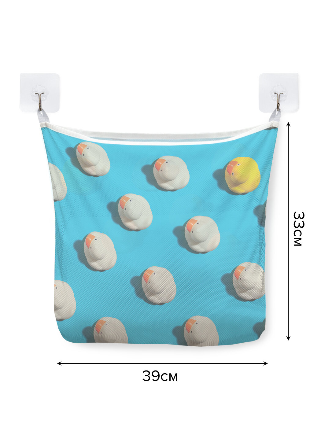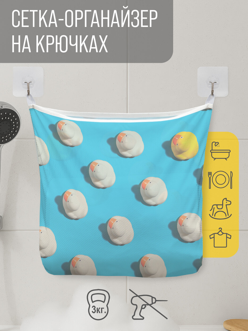 Сетка для игрушек в ванную "Море уточек" органайзер для хранения, крючки, 33x39 см, JoyArty, серия 23 февраля интересное: