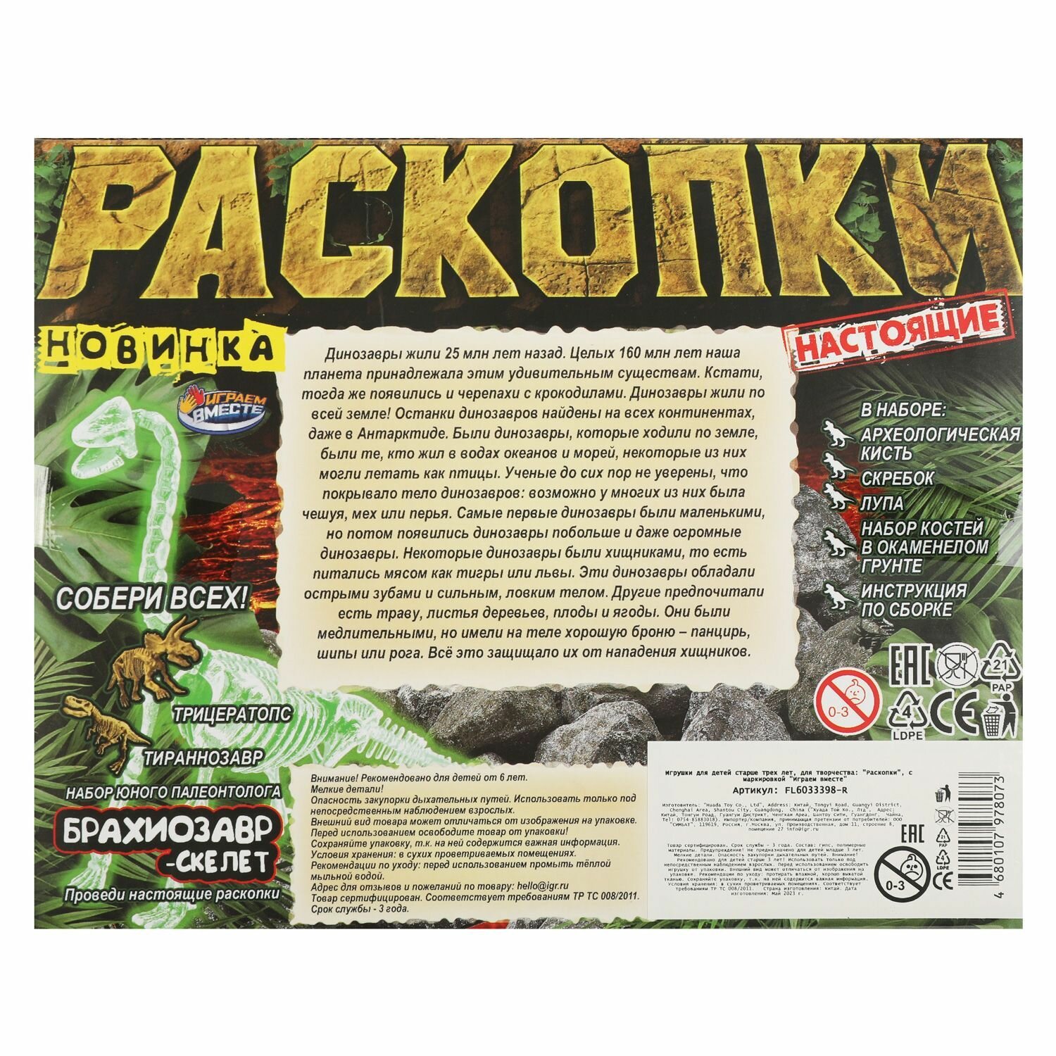 Игровой набор настоящие раскопки динозавра Бразиозавр скелет Играем вместе интересное: