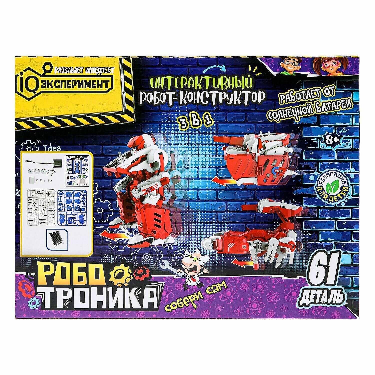 Игровой набор опыты IQ Эксперимент Роботроника Робот-конструктор 3 в 1 интересное: