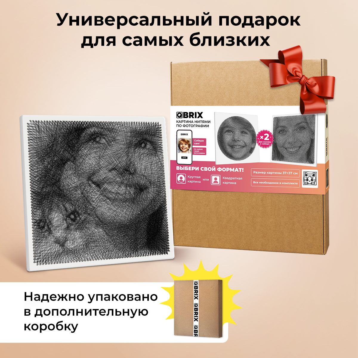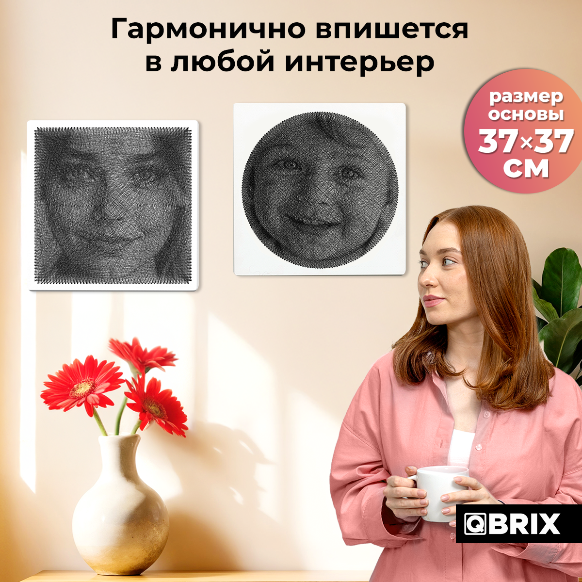 QBRIX Картина нитями по фото 2 основы 37х37 (подарочный набор для создания картины нитью из фотографии) интересное:
