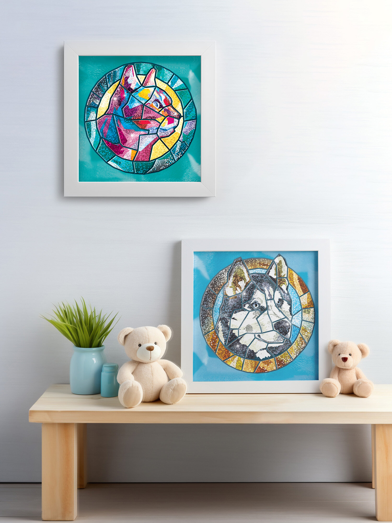 Аппликация. Сверкающая мозаика поделка для детей Хаски