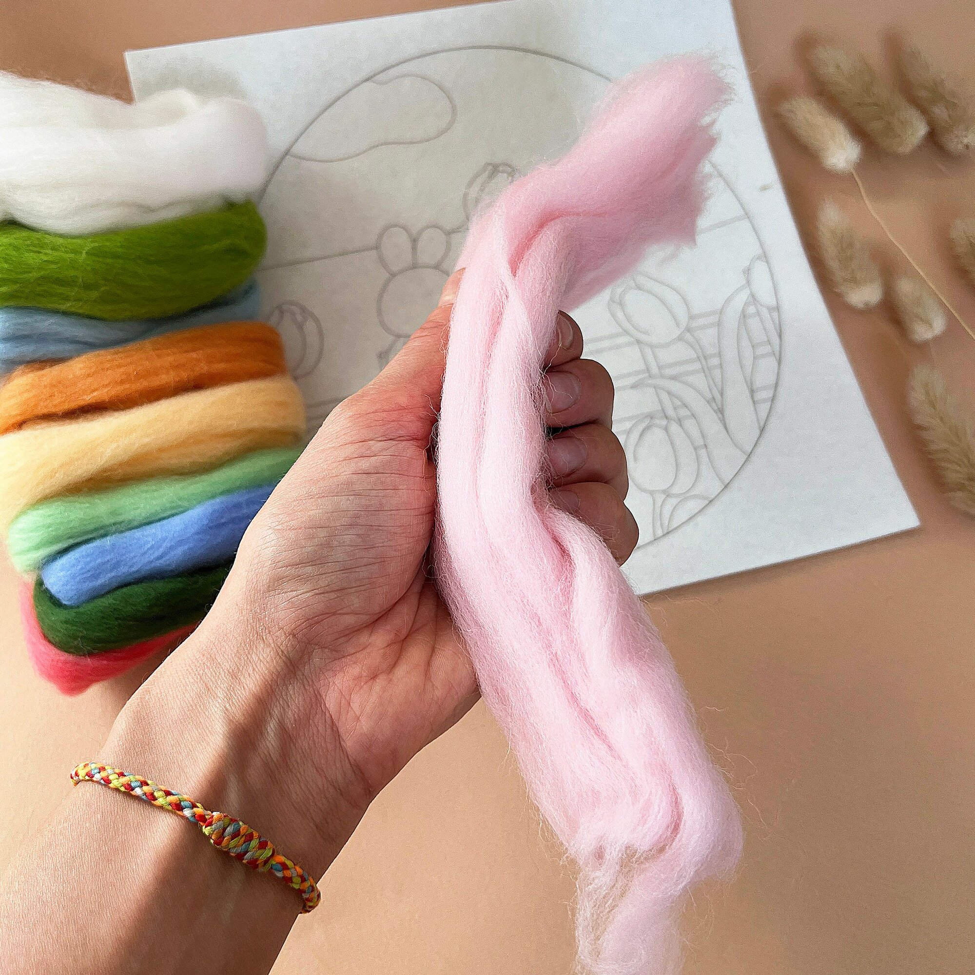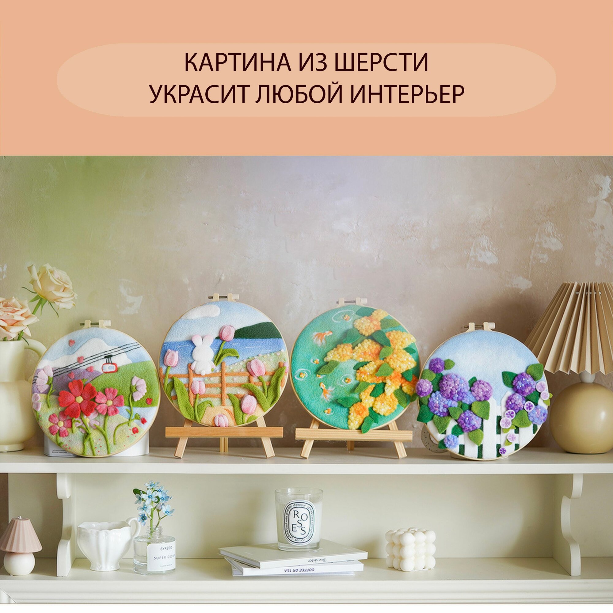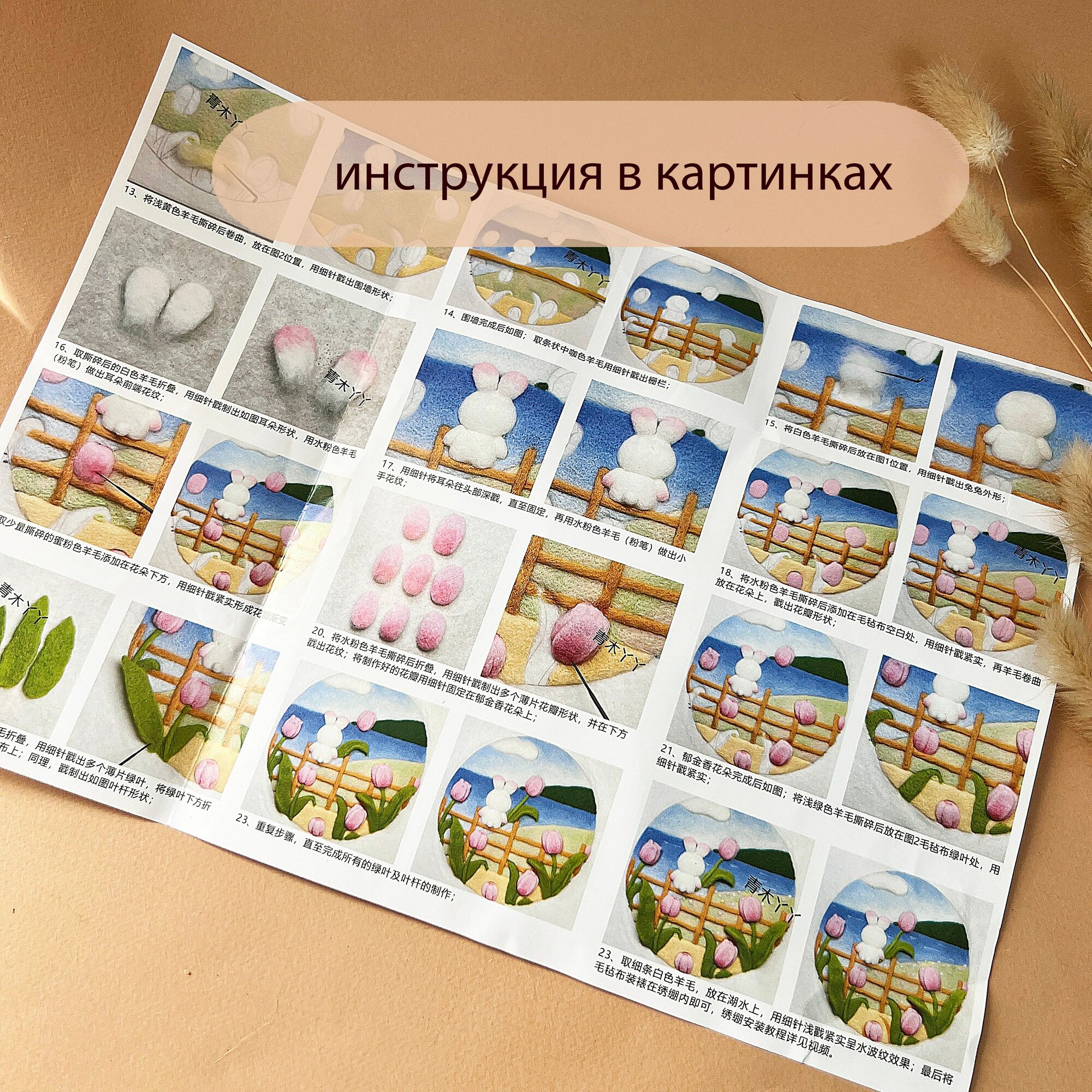 Набор для шерстяной акварели, набор для сухого валяния с инструкцией и инструментами в рамке интересное: