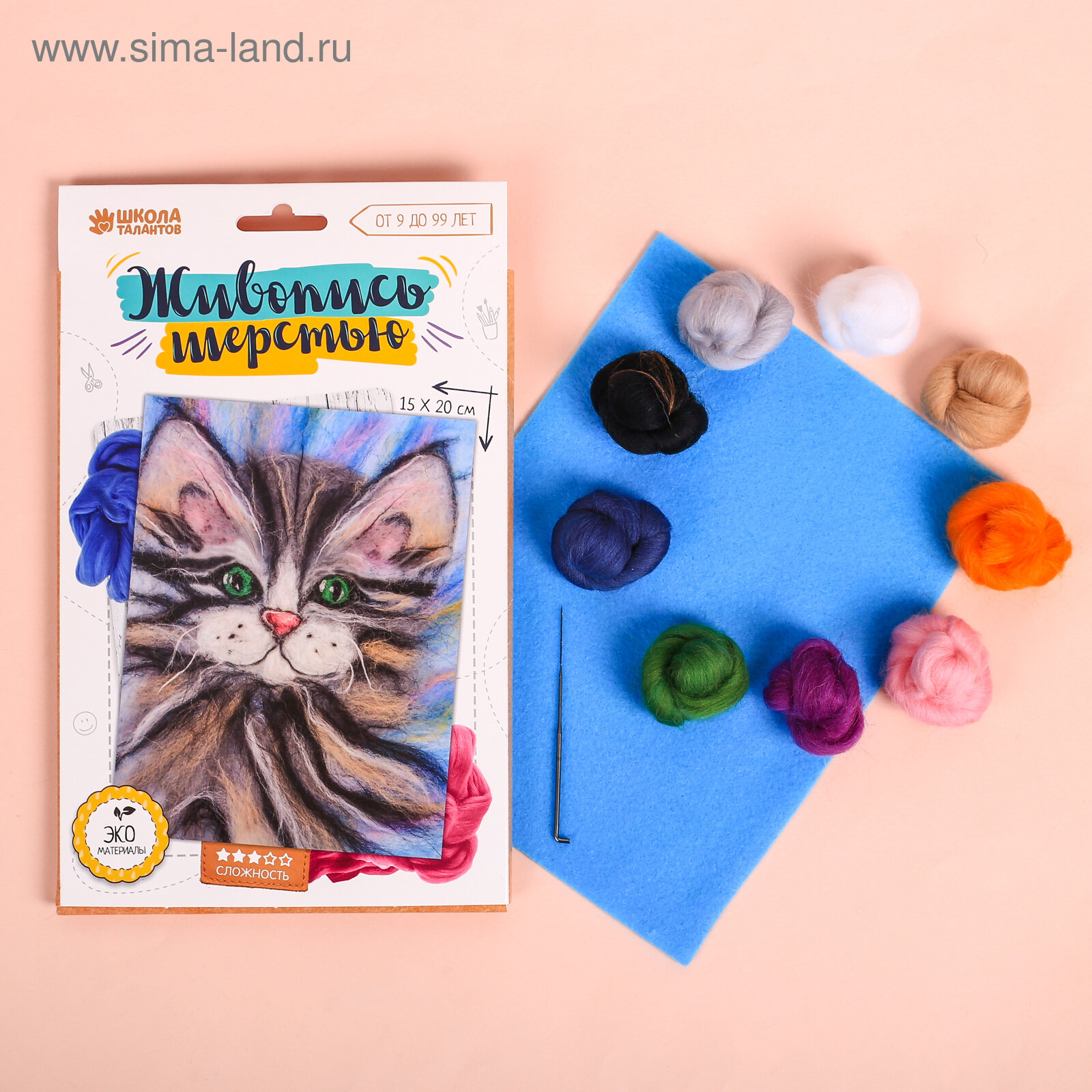 Купить Живопись шерстью "Котёнок" с эко материалами, набор для валяния и детского творчества, формат А5, уровень сложности 3
