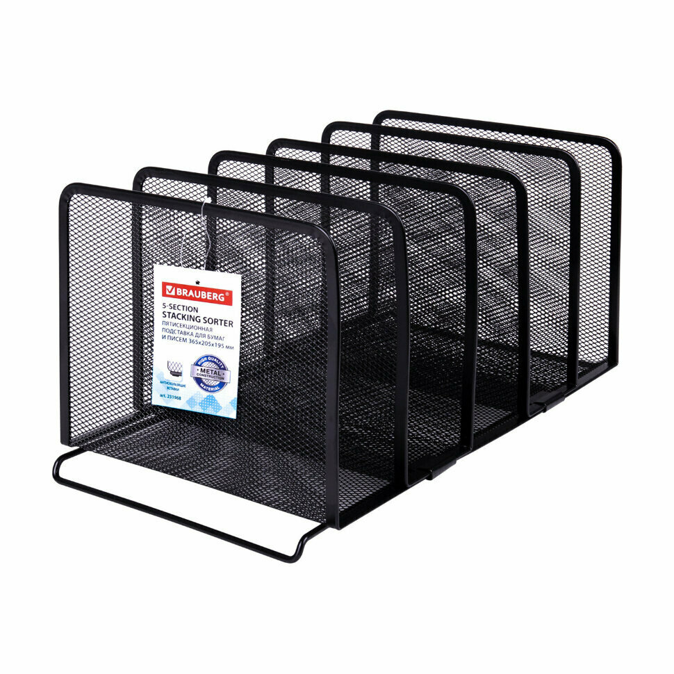 Подставка для сортировки писем и бумаг 5-ти секционная Brauberg Germanium, металлическая, настольная, чер, 231968