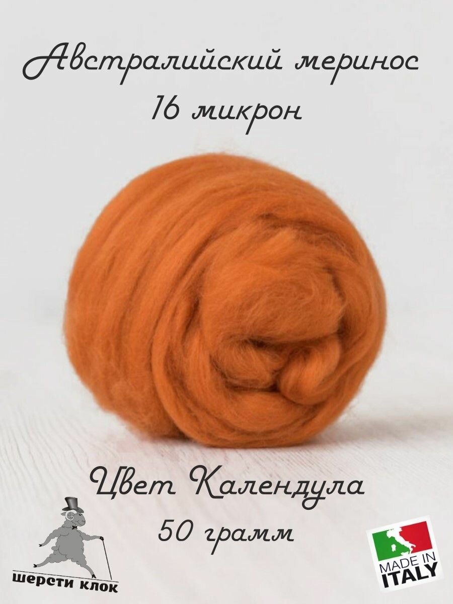 Купить Шерсть для валяния супертонкая австралийский меринос 16 мкр, Италия, цвет Календула