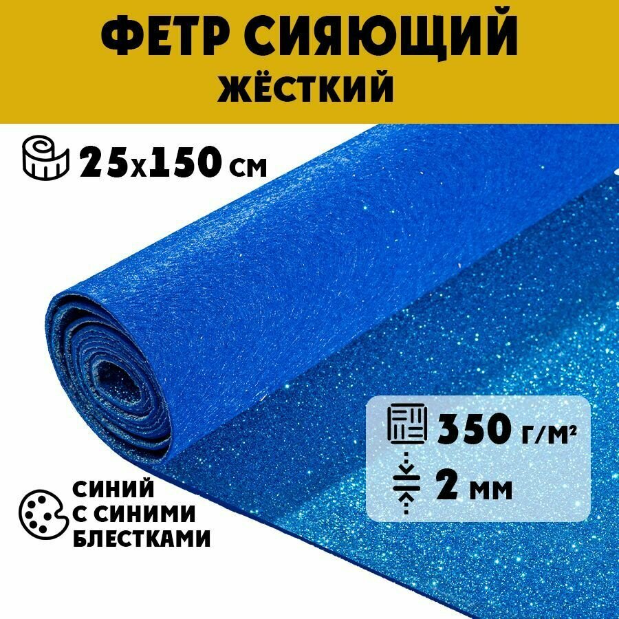 Купить Фетр сияющий жесткий 2 мм 25х150 см, синий с синими блестками