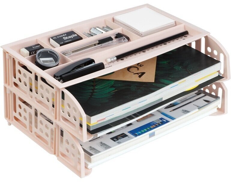 Лоток для бумаг горизонтальный СТАММ "Field", набор 2шт. + органайзер, розовый Paris, 323317