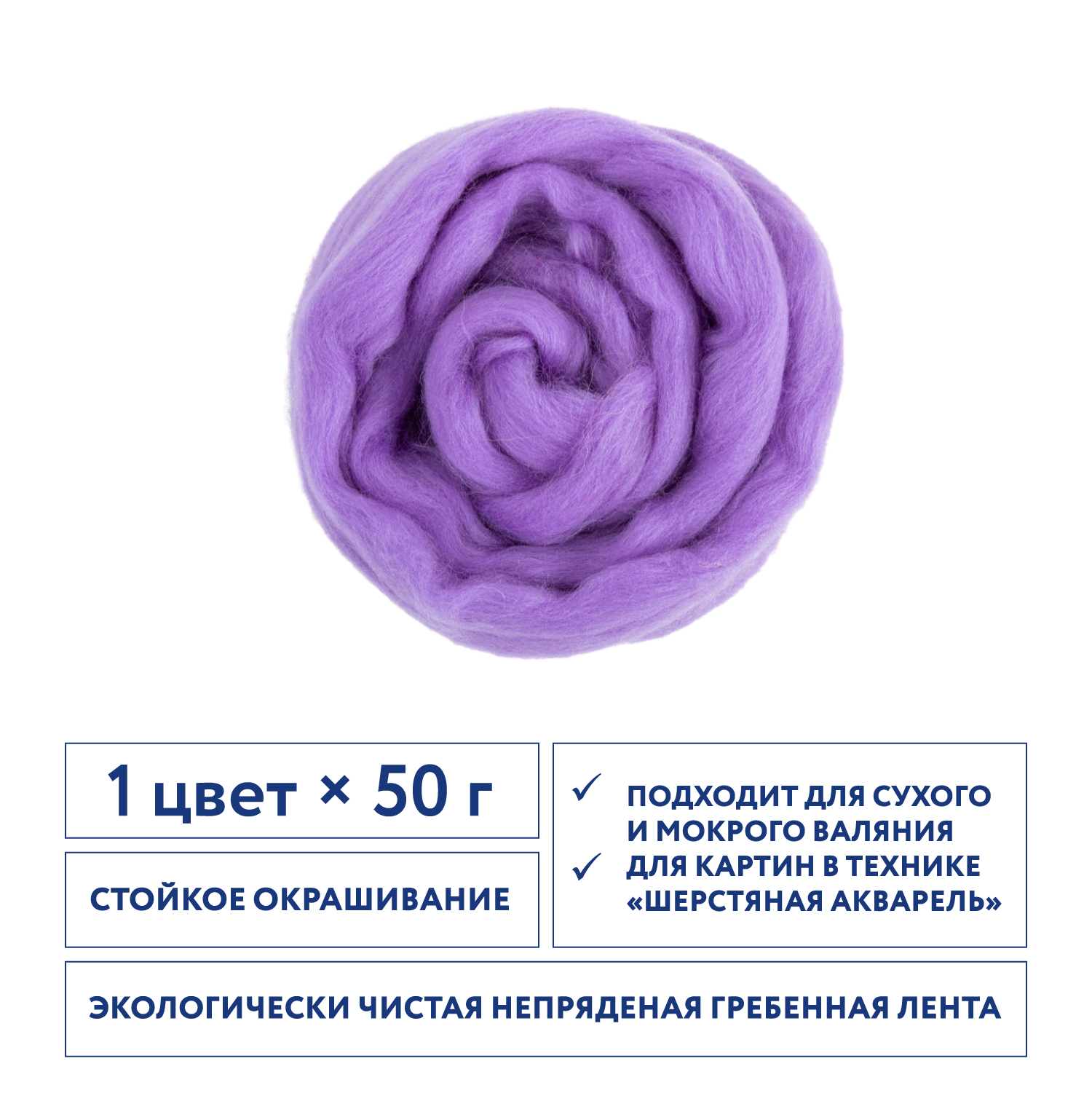 Шерсть для валяния, тонкая, Gamma FY-050 100% мериносовая шерсть 50 г №0175 василек