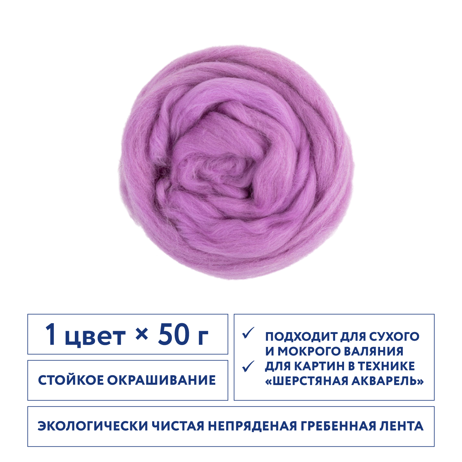 Купить Шерсть для валяния, тонкая, Gamma FY-050 100% мериносовая шерсть 50 г №1756 св. фиалка