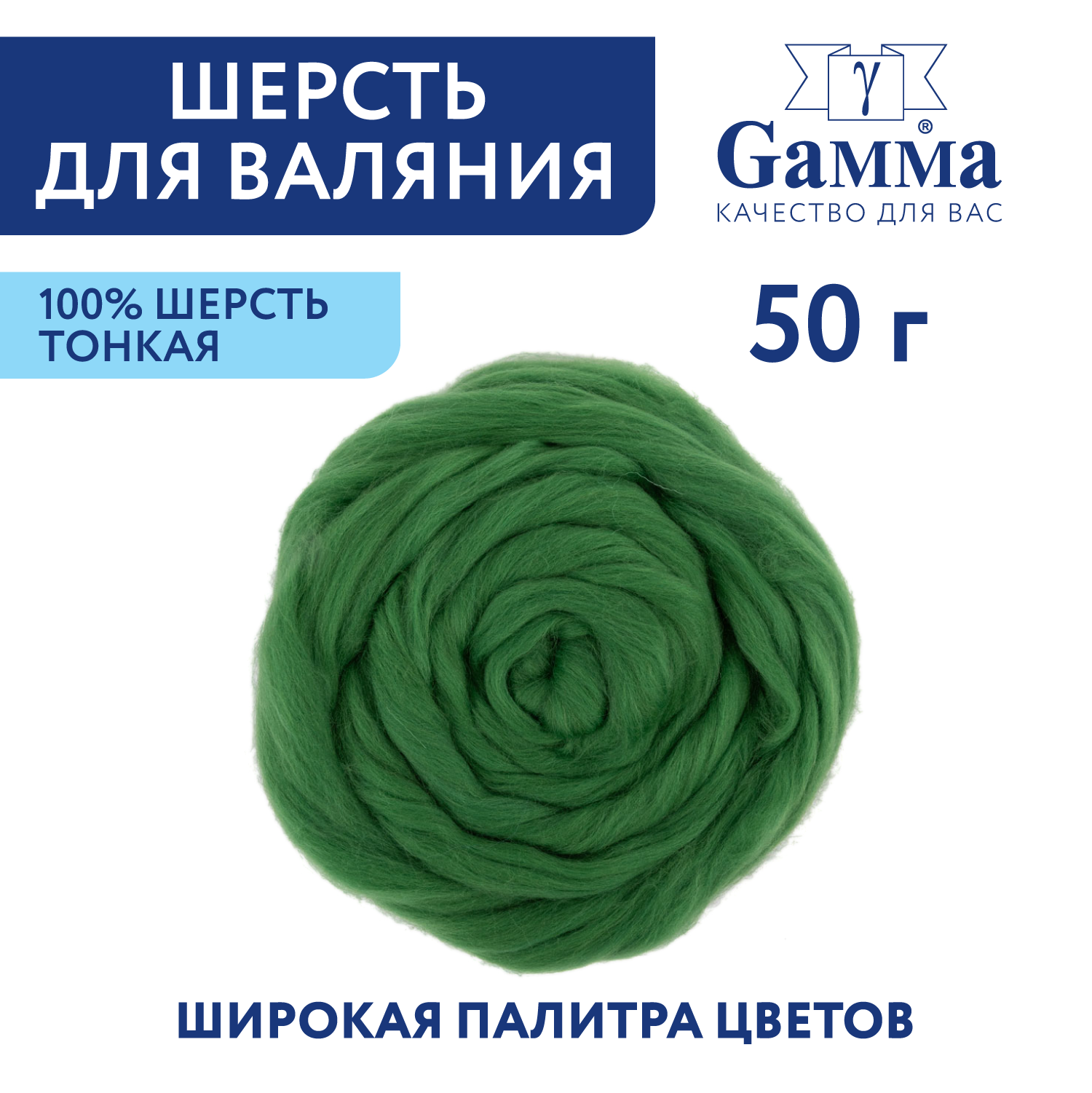 Шерсть для валяния, тонкая, Gamma FY-050 100% мериносовая шерсть 50 г №1006 липа