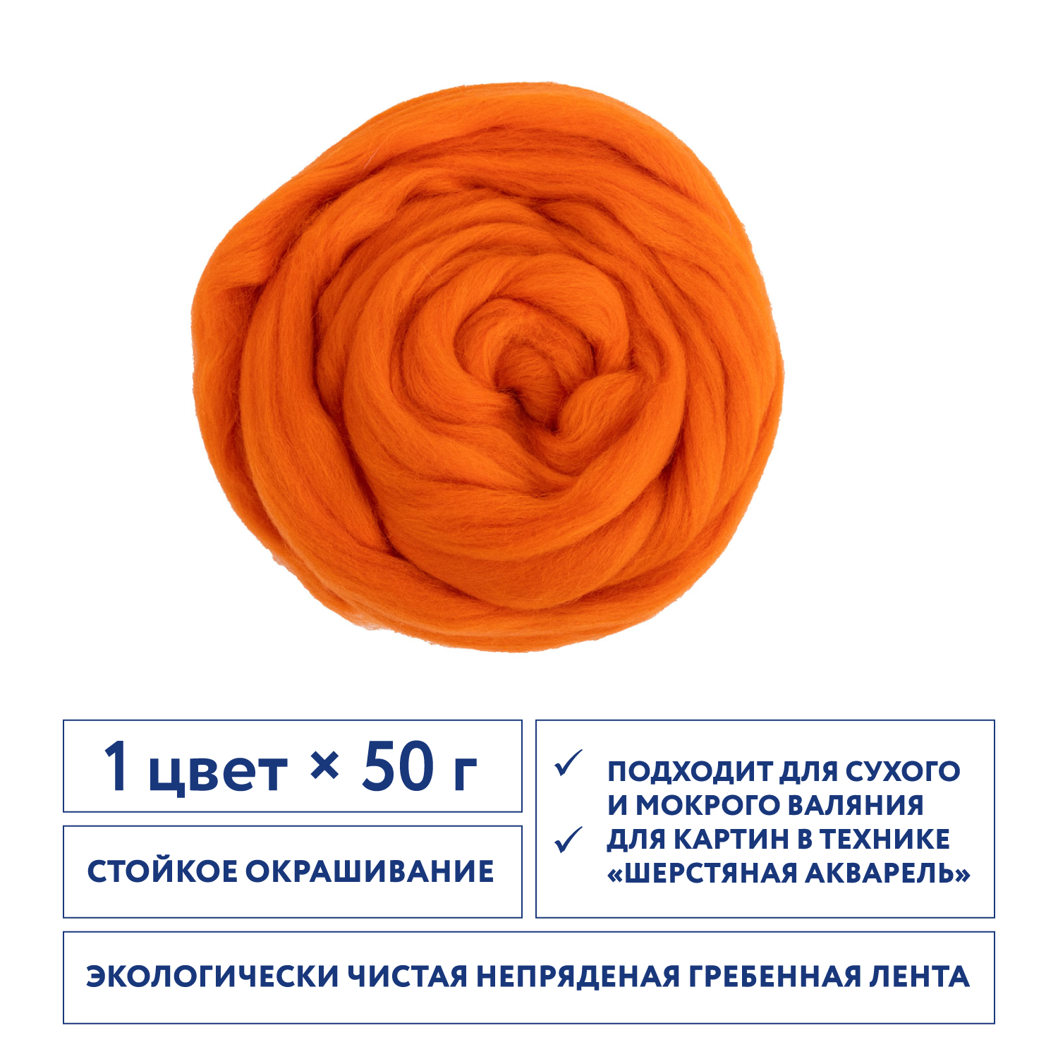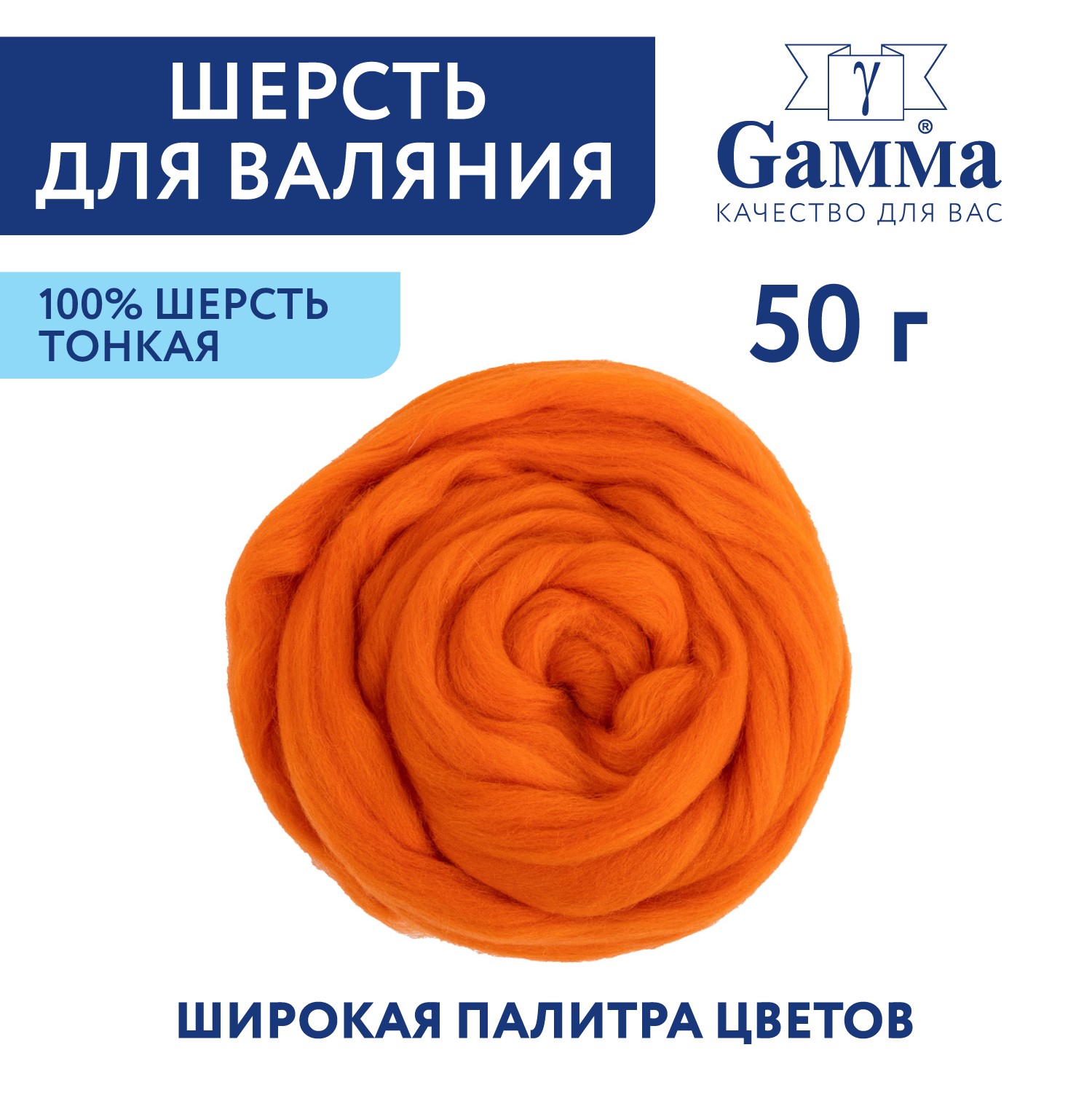 Купить Шерсть для валяния, тонкая, Gamma FY-050 100% мериносовая шерсть 50 г №0491 оранжевый