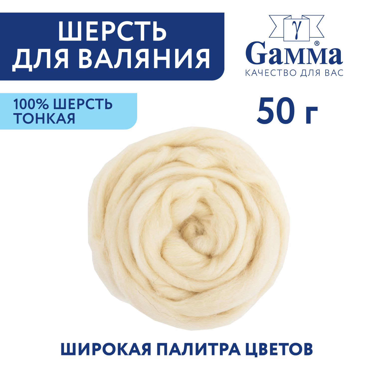 Шерсть для валяния, тонкая, Gamma FY-050 100% мериносовая шерсть 50 г №0230 отбелка