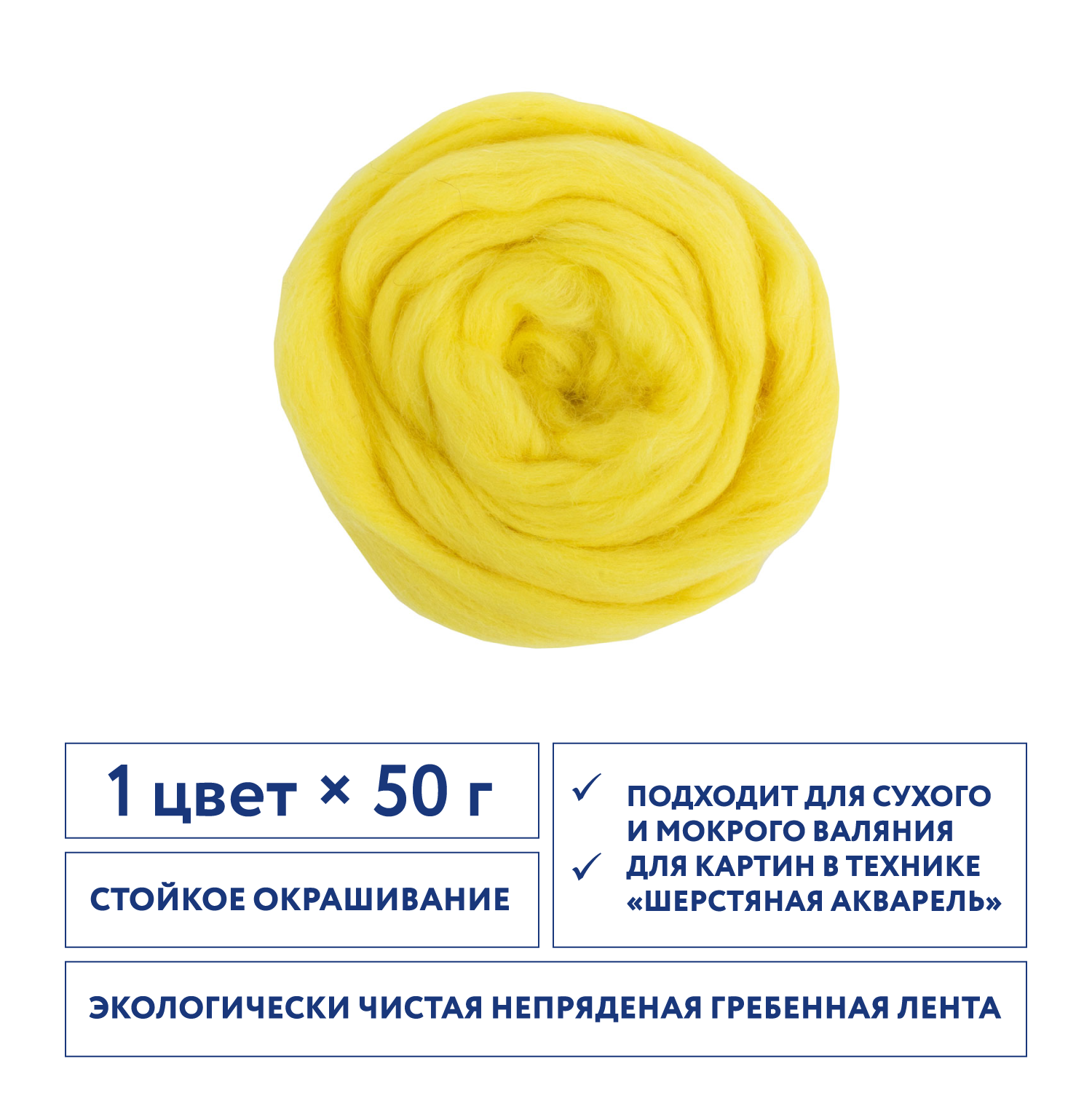 Купить Шерсть для валяния, тонкая, Gamma FY-050 100% мериносовая шерсть 50 г №1340 лимон