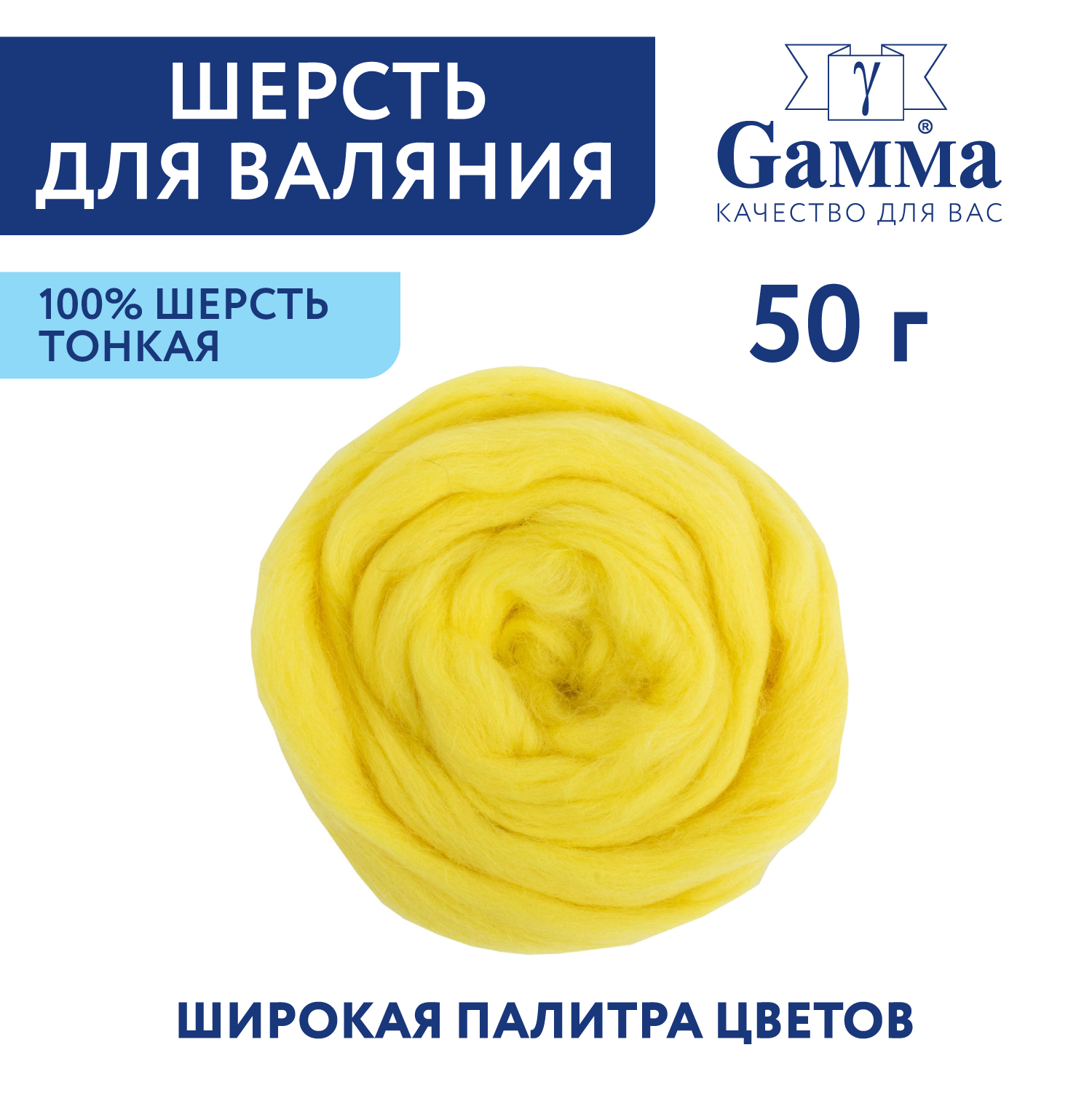 Шерсть для валяния, тонкая, Gamma FY-050 100% мериносовая шерсть 50 г №0591 желтый