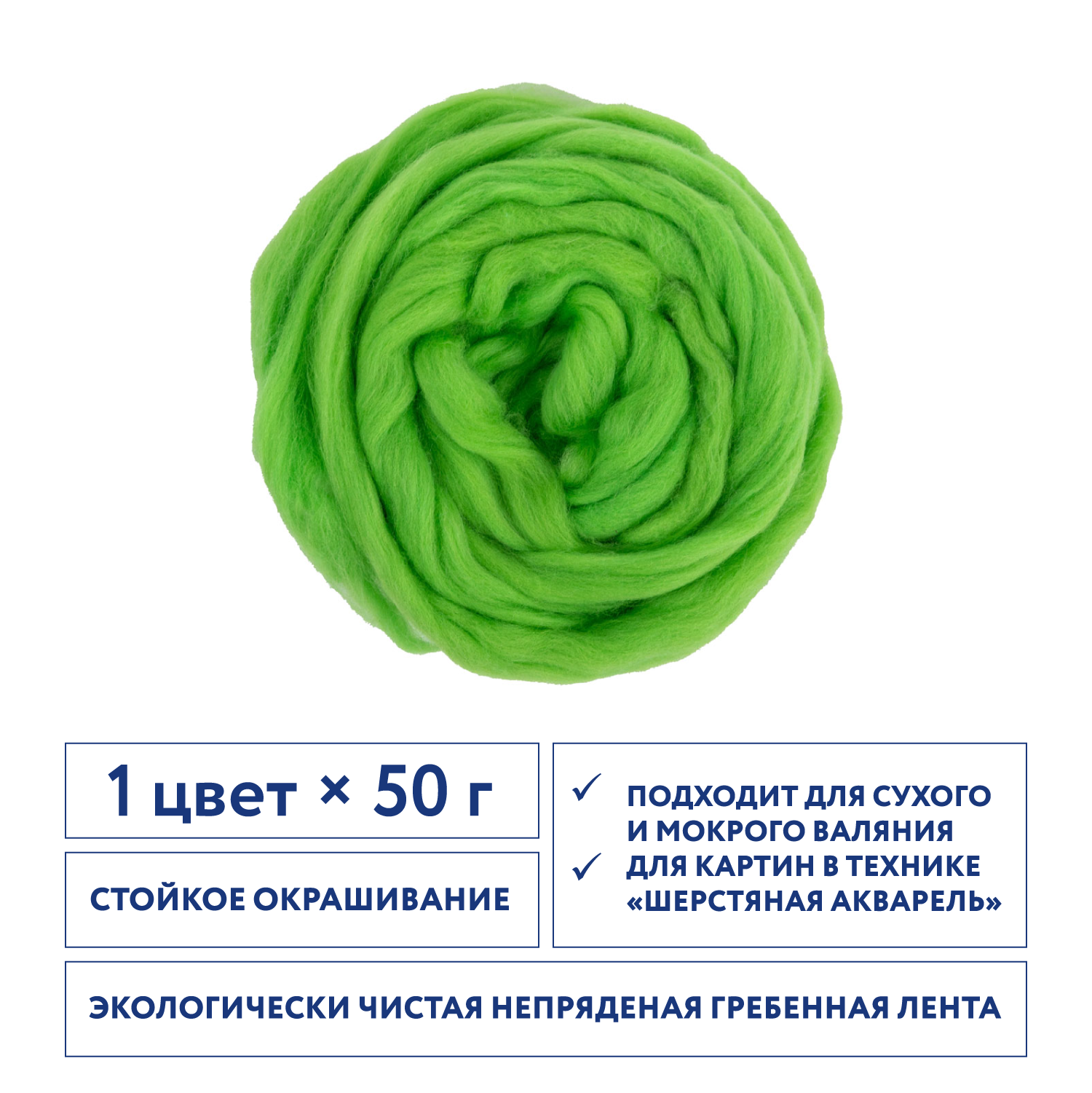 Купить Шерсть для валяния, тонкая, Gamma FY-050 100% мериносовая шерсть 50 г №3295 яр. салат