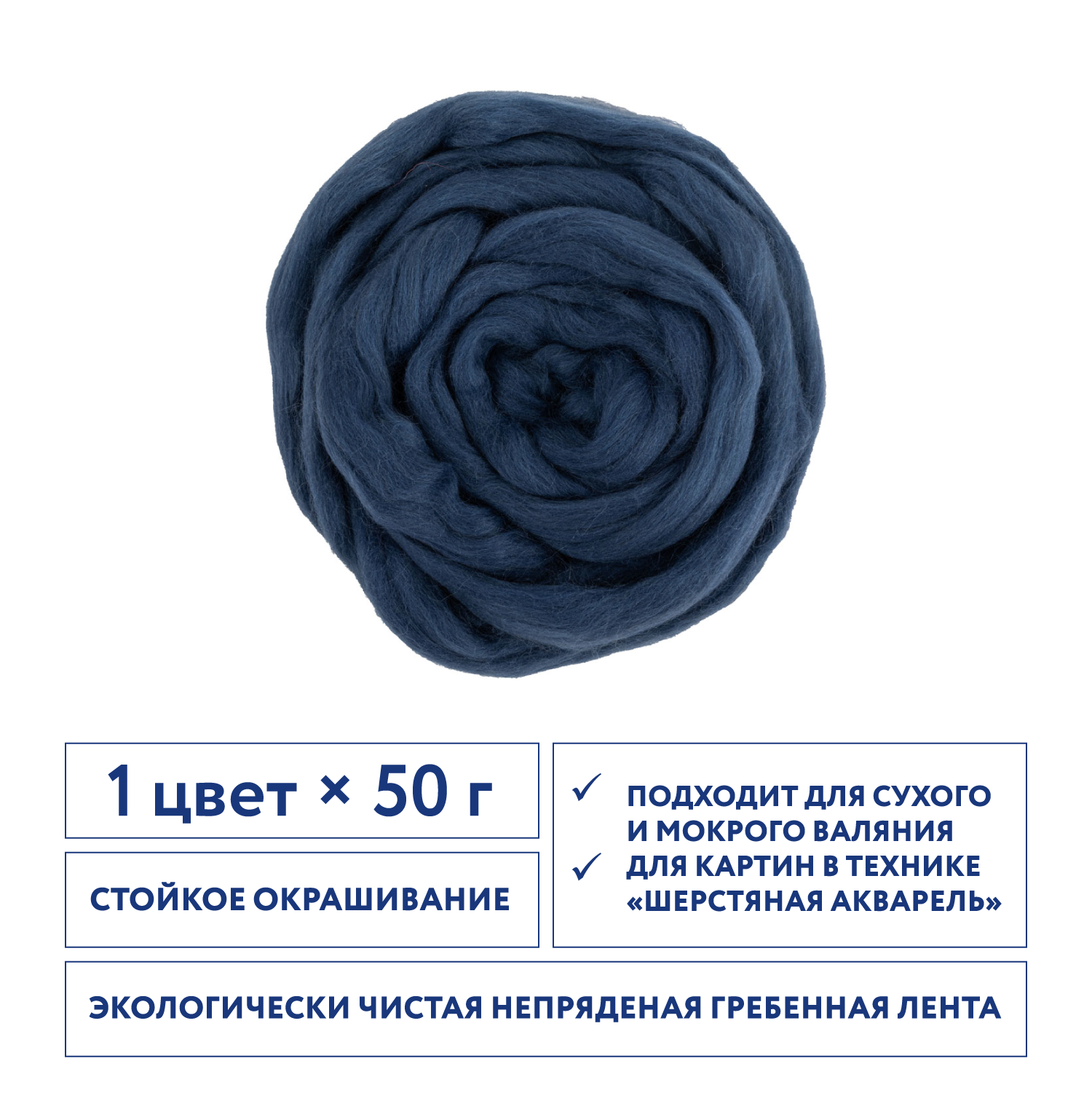 Купить Шерсть для валяния, тонкая, Gamma FY-050 100% мериносовая шерсть 50 г №1608 джинсовый