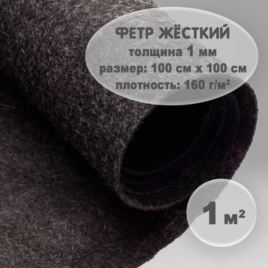 Фетр жесткий 1 мм в рулоне 1х1 метр, тёмно-серый С65, плотность 160г/м2