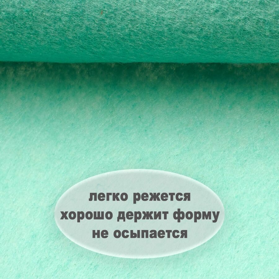 СохранитьФетр жесткий 1 мм в рулоне 1х1 метр, светло-бирюзовый С58, плотность 160г/м2 интересное: