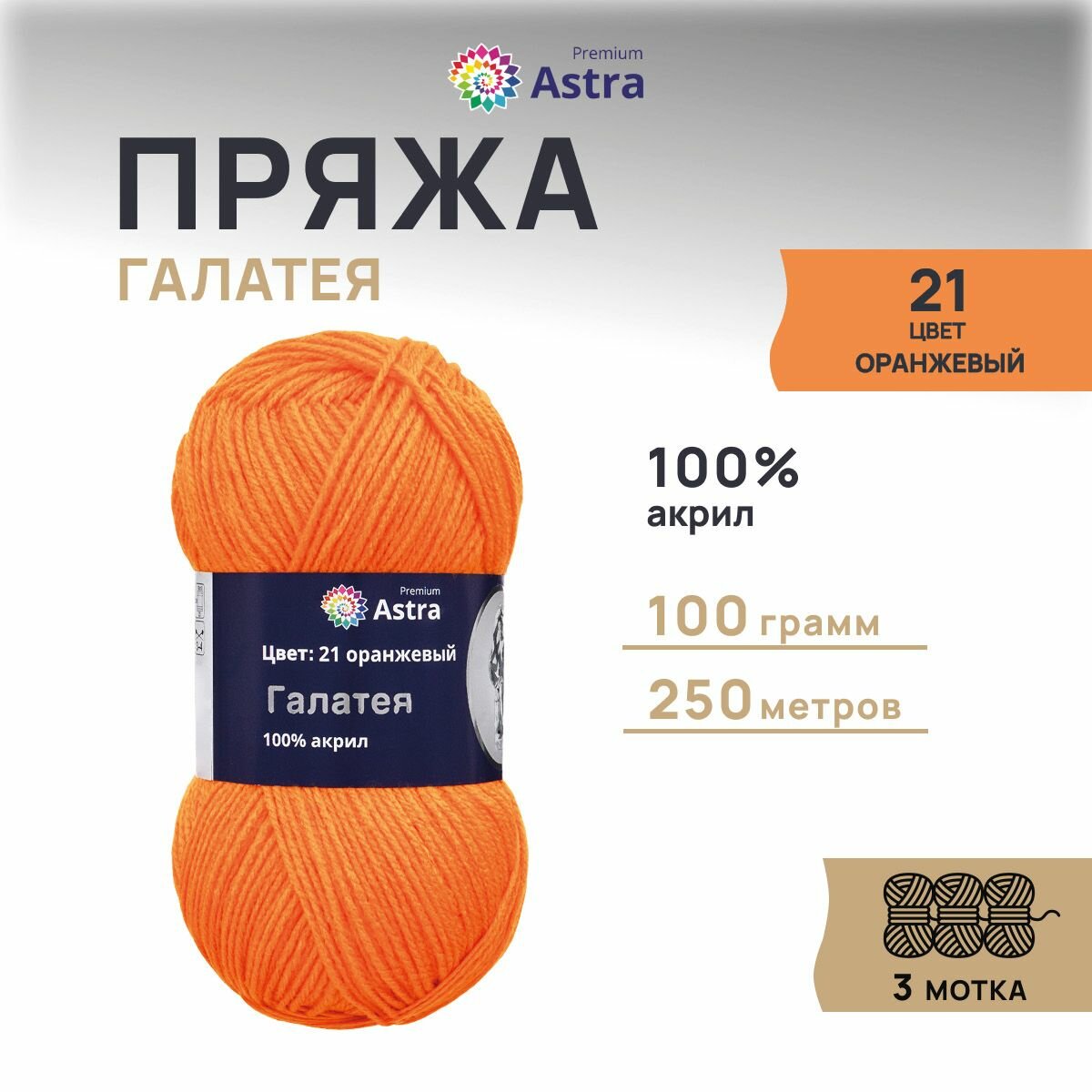 Купить Пряжа для вязания Astra Premium 'Галатея' 100г, 250м (100% акрил) (21 оранжевый), 3 мотка