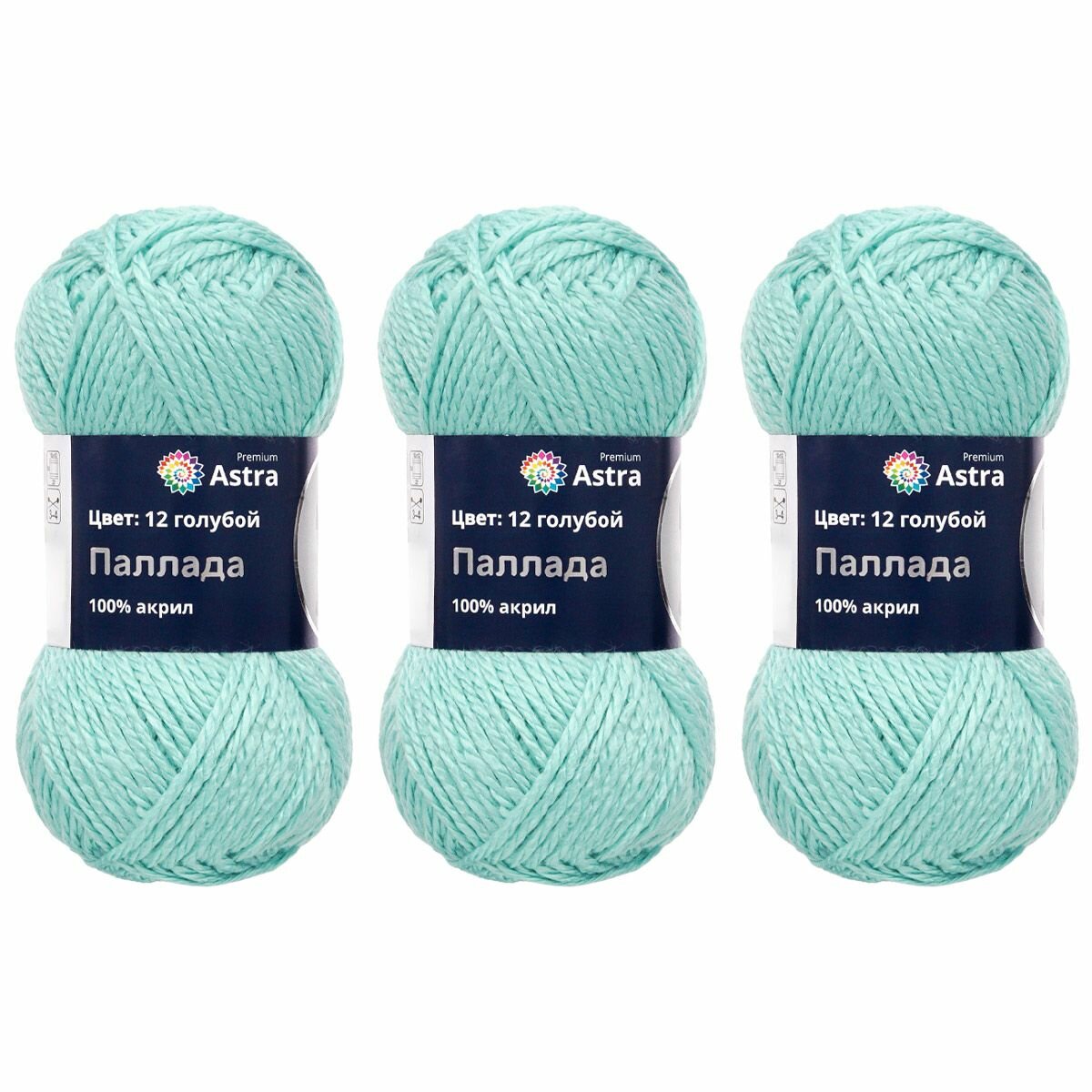 Купить Пряжа для вязания Astra Premium 'Паллада' 100г, 100м (100% акрил) (12 голубой), 3 мотка
