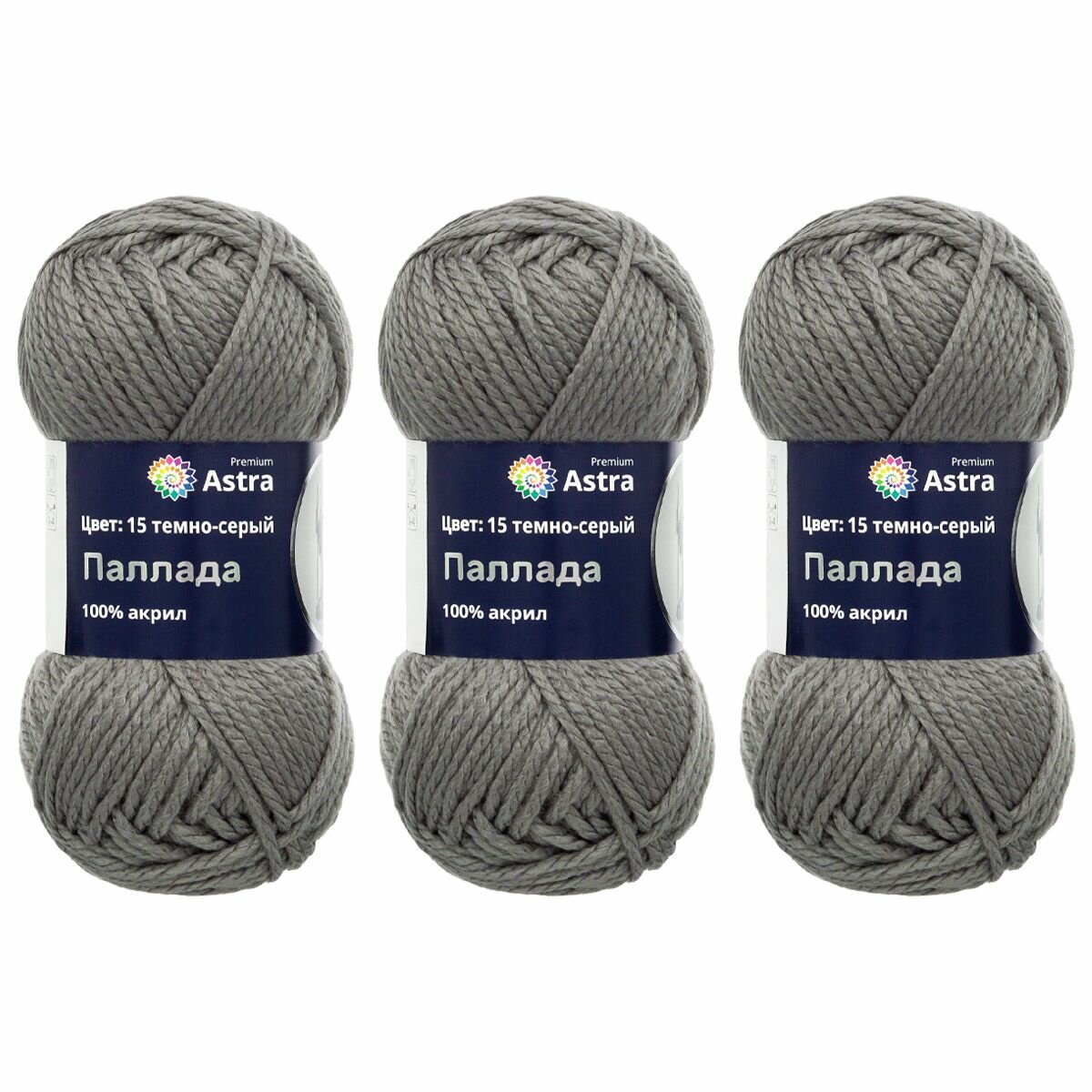 Купить Пряжа для вязания Astra Premium 'Паллада' 100г, 100м (100% акрил) (15 темно-серый), 3 мотка