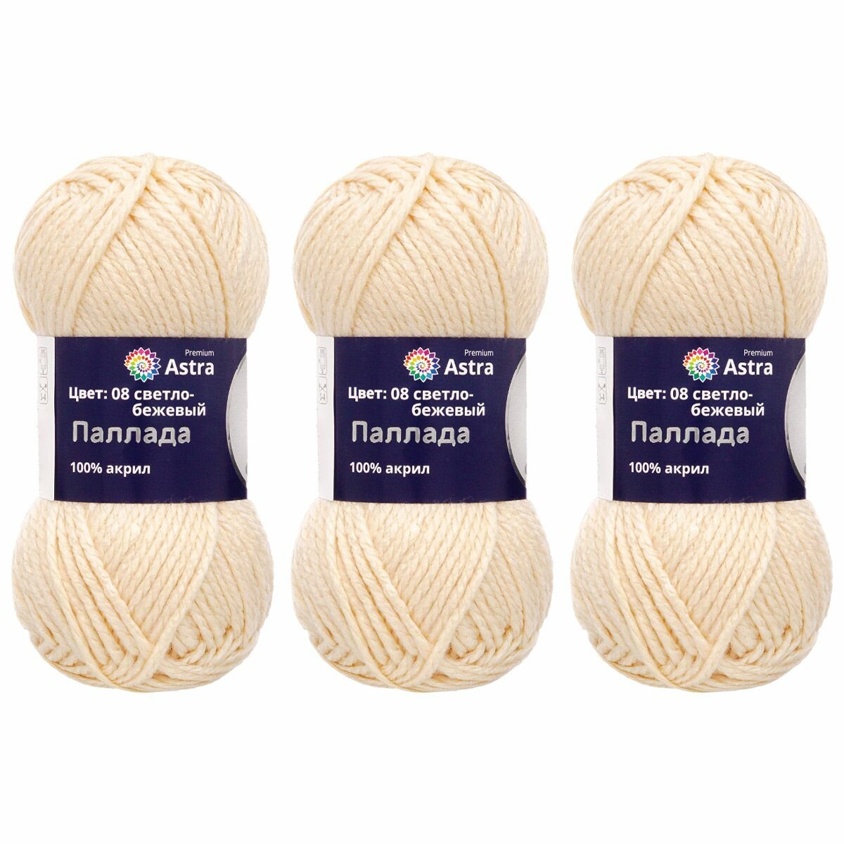 Купить Пряжа для вязания Astra Premium 'Паллада' 100г, 100м (100% акрил) (08 светло-бежевый), 3 мотка