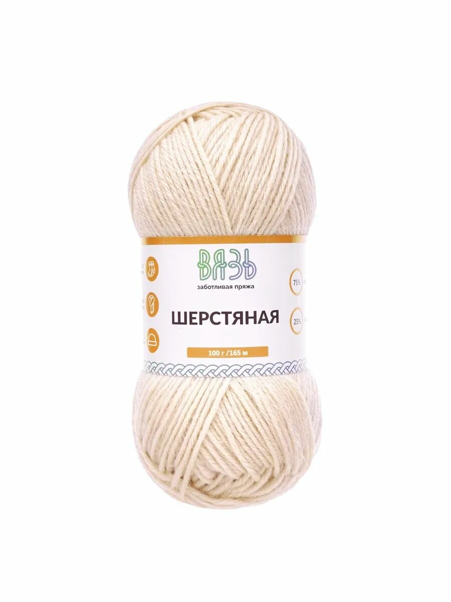 Купить Пряжа для вязания Вязь 'Шерстяная' 100г, 165м (75% шерсть, 25% нейлон) (02 бежевый), 3 мотка