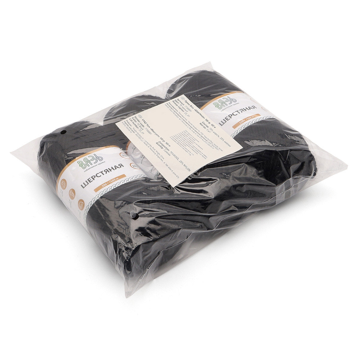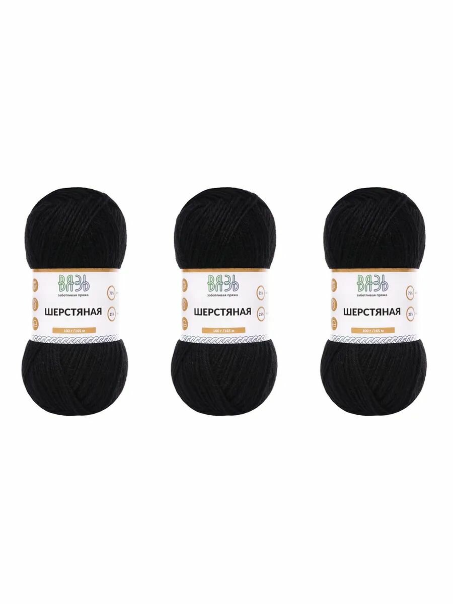 Купить Пряжа для вязания Вязь 'Шерстяная' 100г, 165м (75% шерсть, 25% нейлон) (15 черный), 3 мотка
