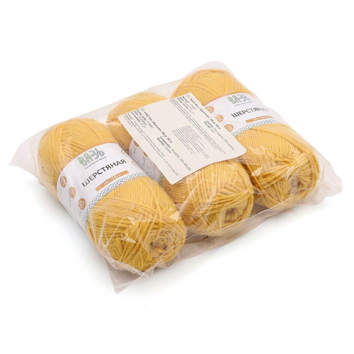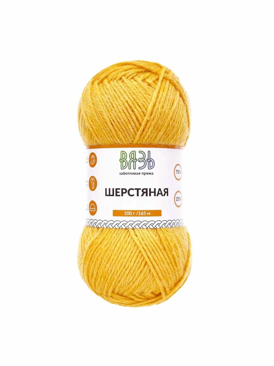 Купить Пряжа для вязания Вязь 'Шерстяная' 100г, 165м (75% шерсть, 25% нейлон) (04 желтый), 3 мотка