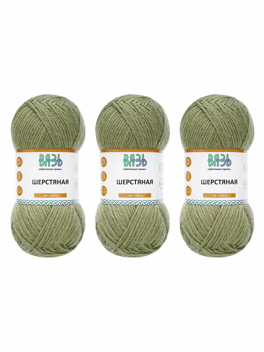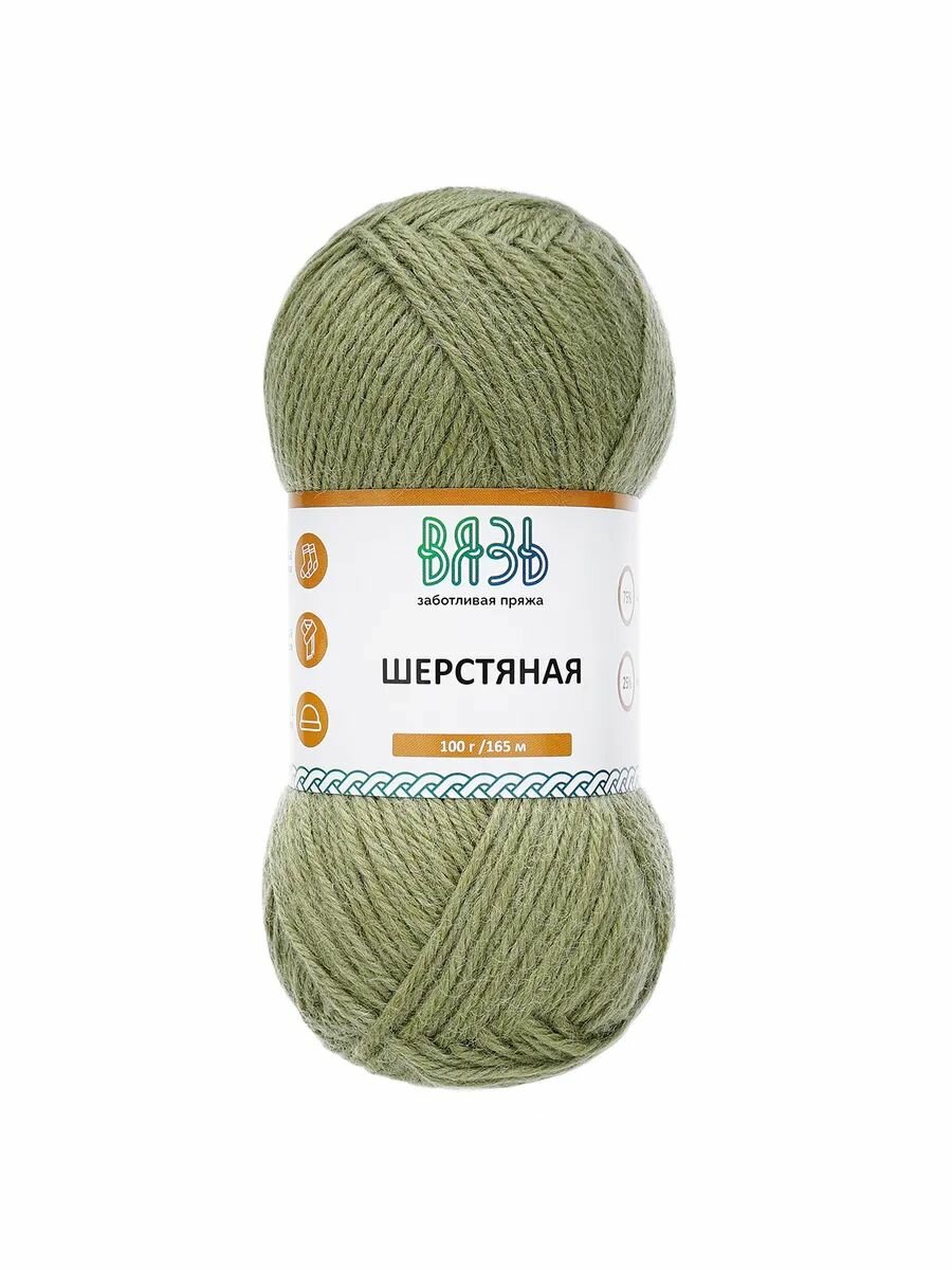 Пряжа для вязания Вязь 'Шерстяная' 100г, 165м (75% шерсть, 25% нейлон) (08 зеленый), 3 мотка