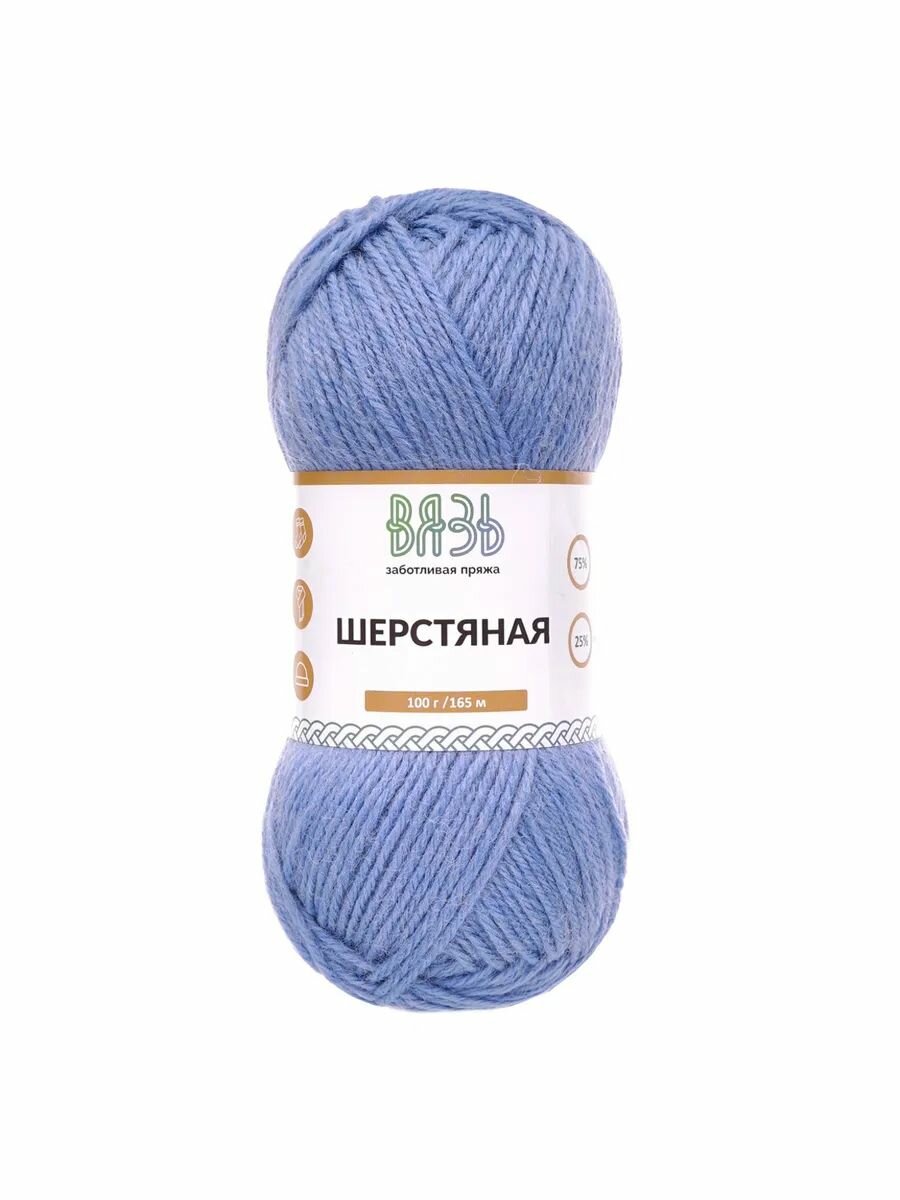 Купить Пряжа для вязания Вязь 'Шерстяная' 100г, 165м (75% шерсть, 25% нейлон) (09 голубой), 3 мотка