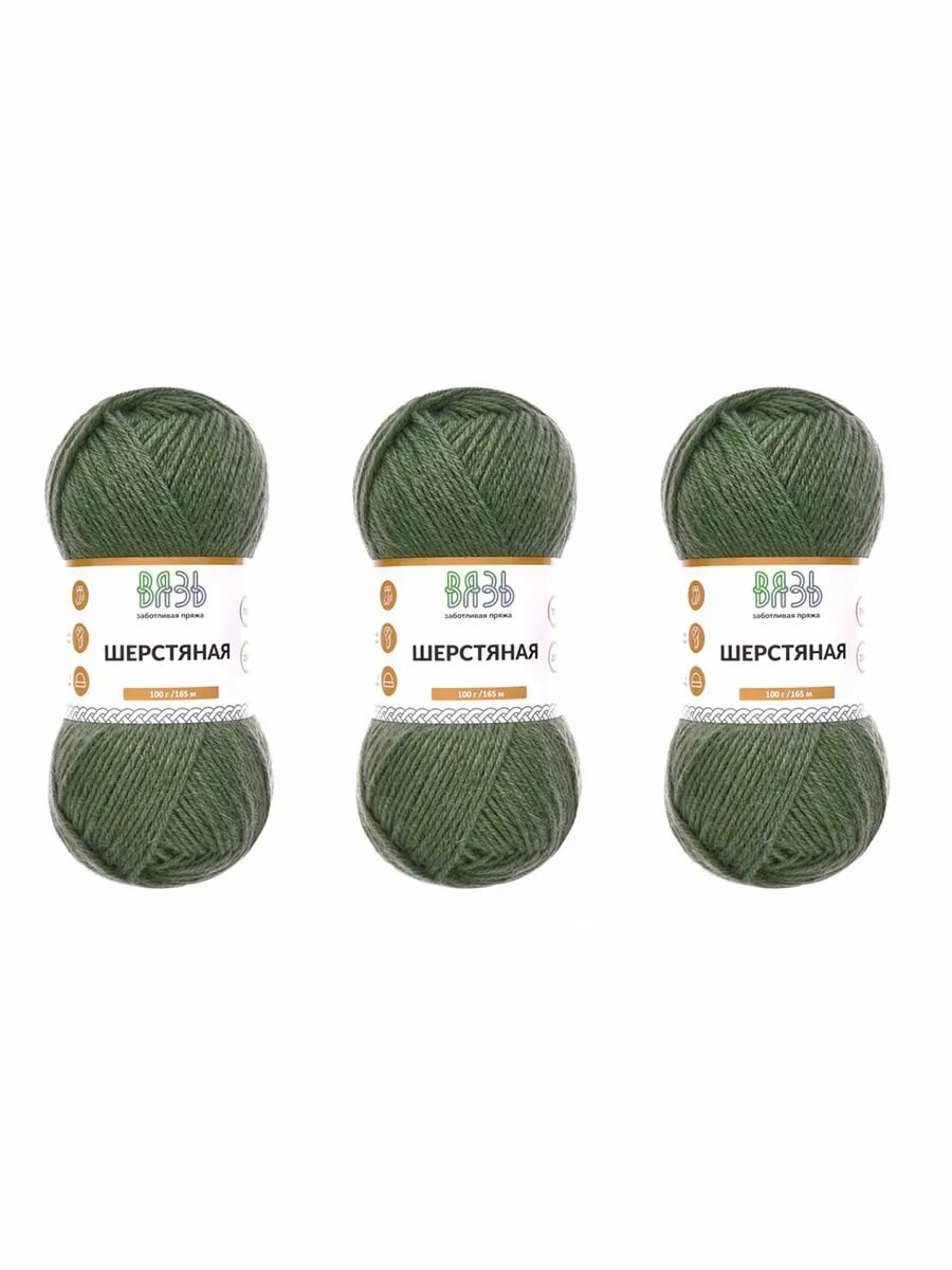 Купить Пряжа для вязания Вязь 'Шерстяная' 100г, 165м (75% шерсть, 25% нейлон) (08 зеленый), 3 мотка