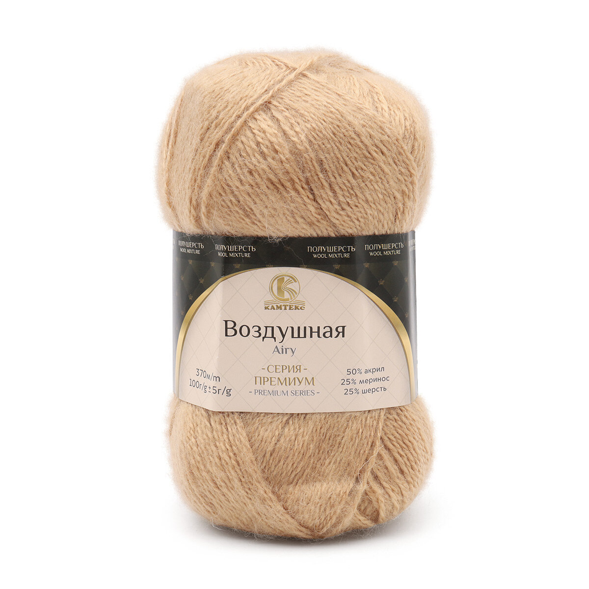 Пряжа Камтекс Воздушная, 25 % шерсть, 25 % мериносовая шерсть, 50 % акрил, 100 г, 370 м, 1 шт, 006 светло-бежевый