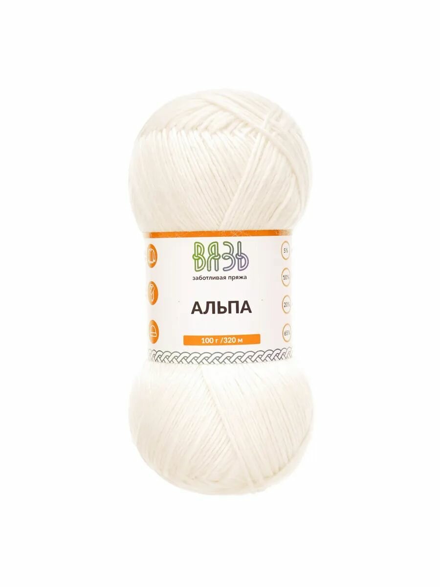 Купить Пряжа для вязания Вязь 'Альпа' 100г, 320м (5% альпака, 10% шерсть, 20% нейлон, 65% акрил) (01 белый), 3 мотка